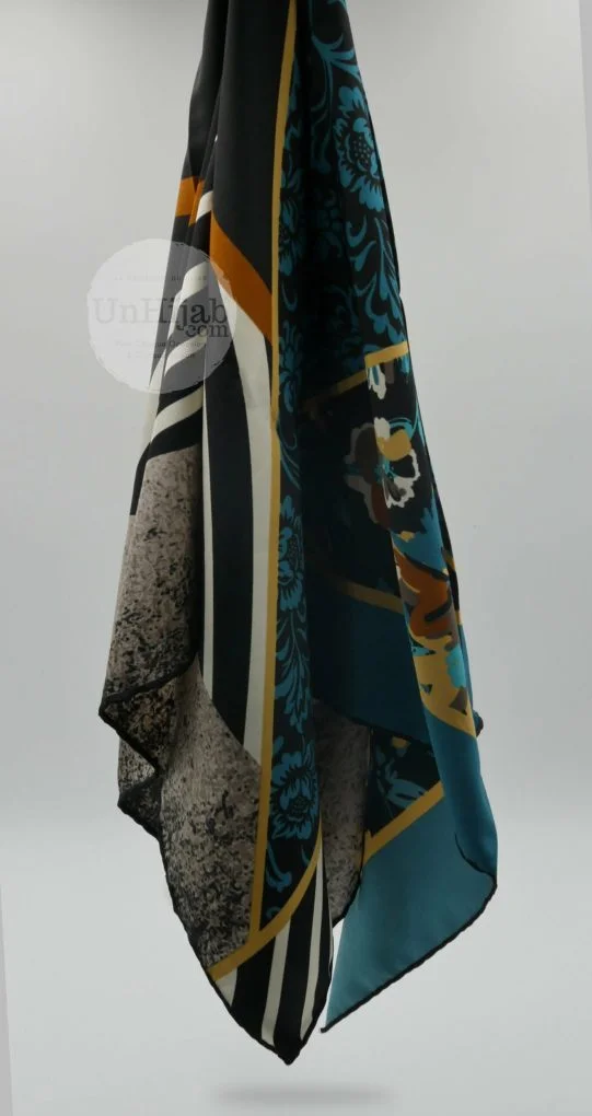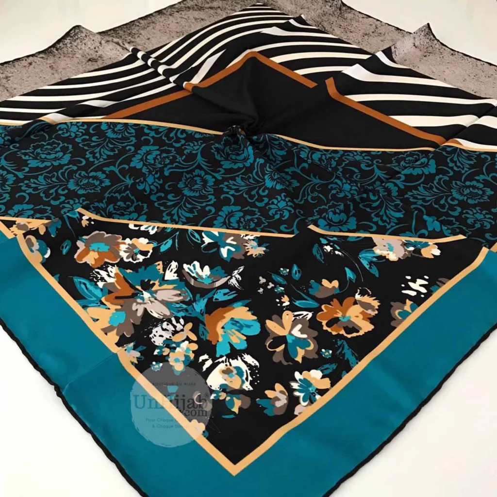 - Foulard carré tissé en Turquie arborant des motifs modernes