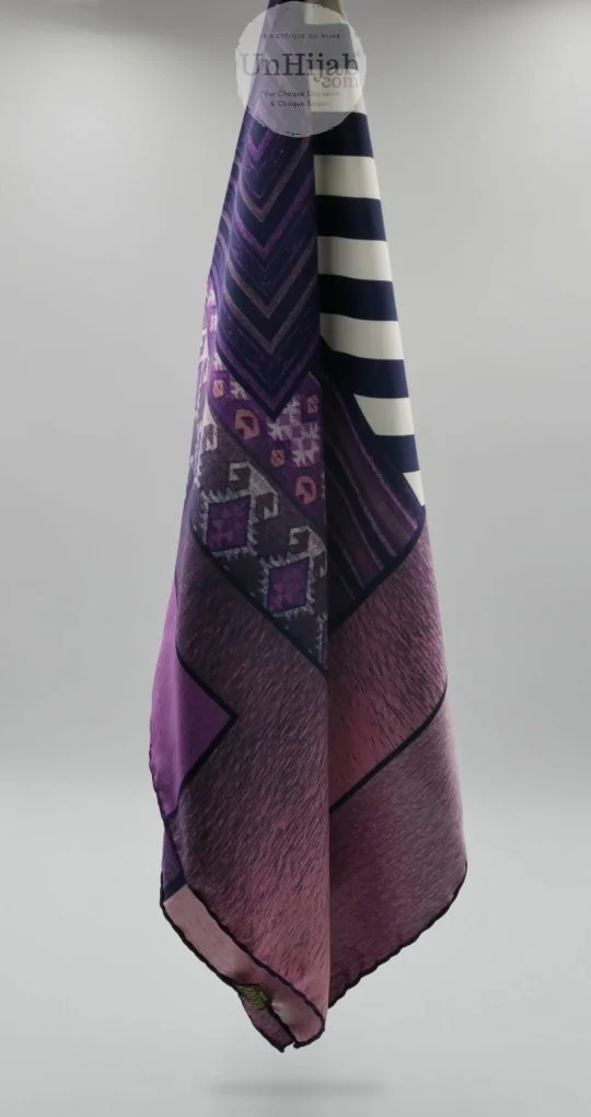 - Foulard carré tissé en Turquie arborant des motifs modernes