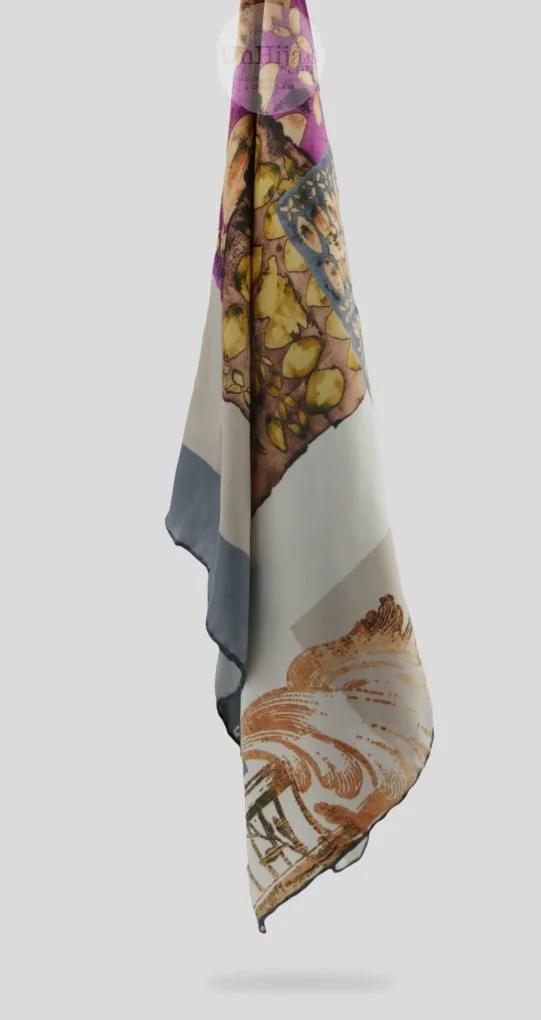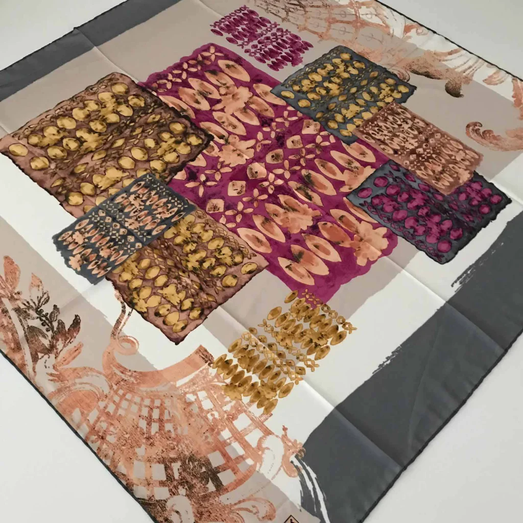 - Foulard carré tissé en Turquie arborant des motifs modernes