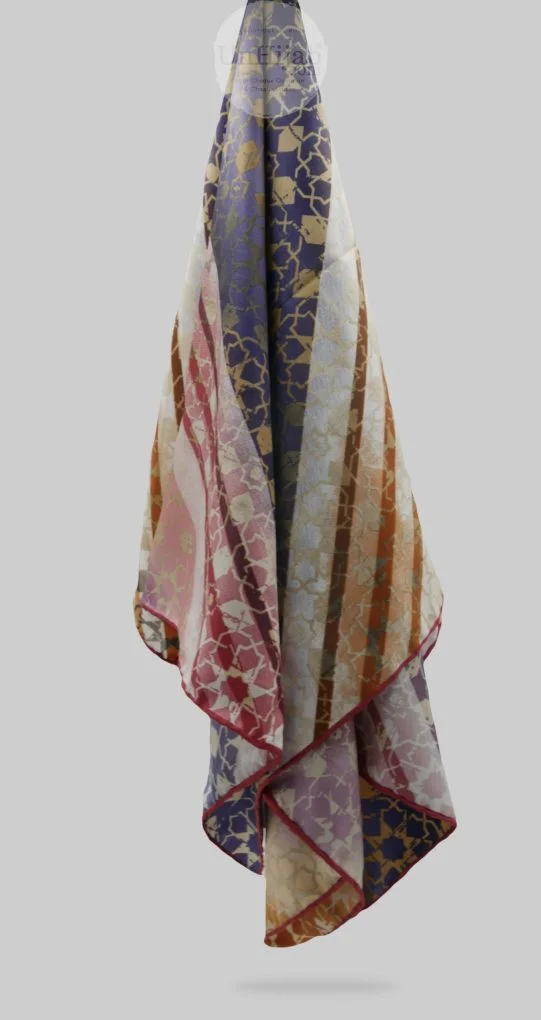 - Foulard carré tissé en Turquie arborant des motifs modernes
