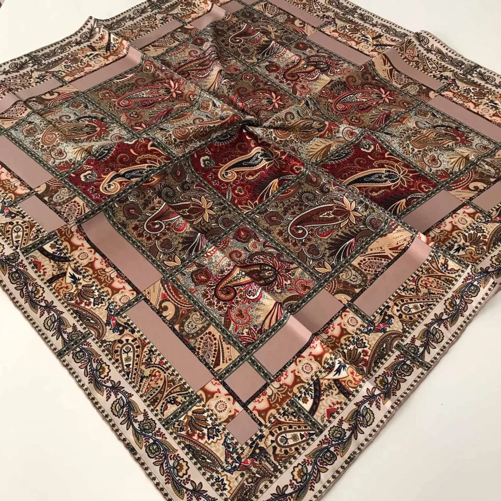 - Foulard carré tissé en Turquie arborant des motifs modernes