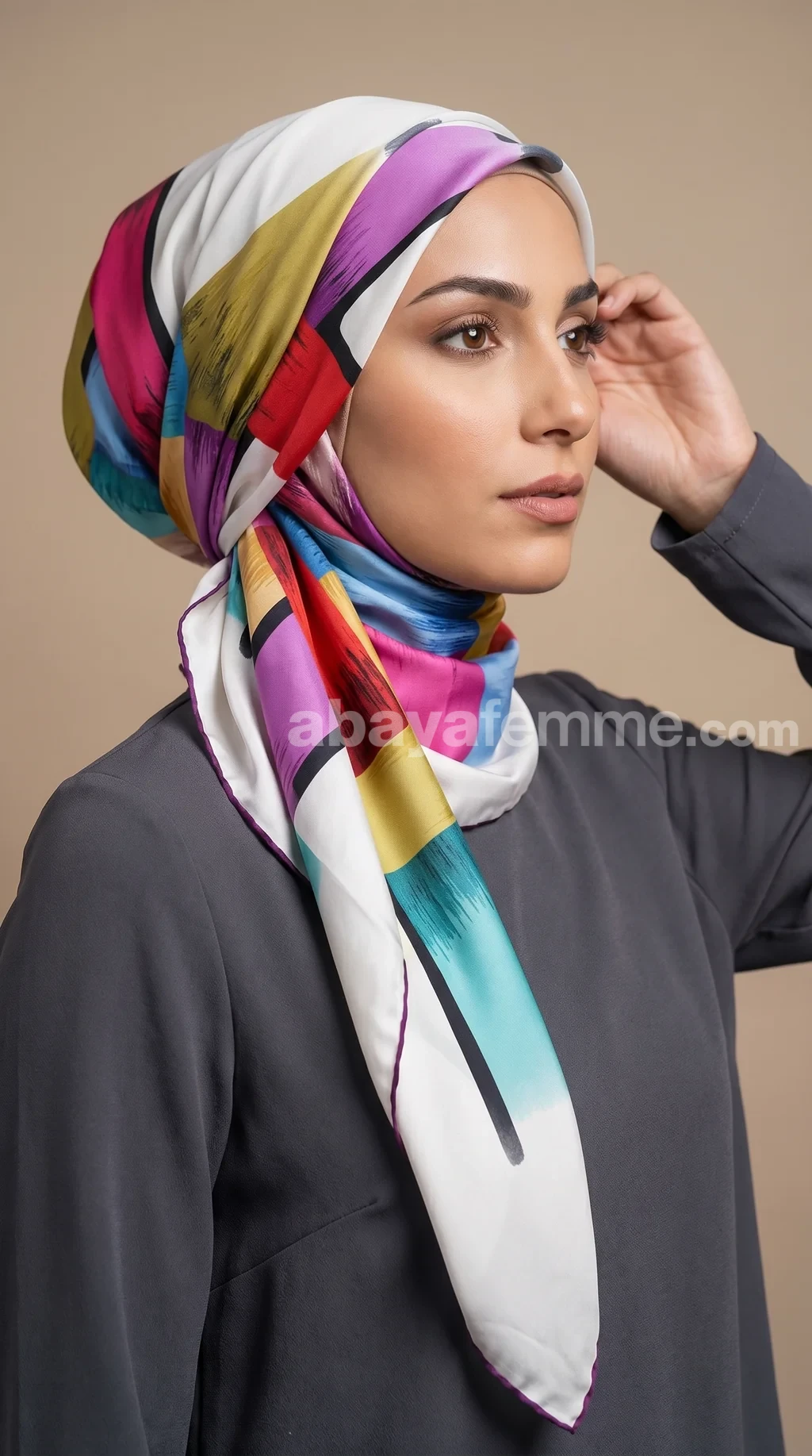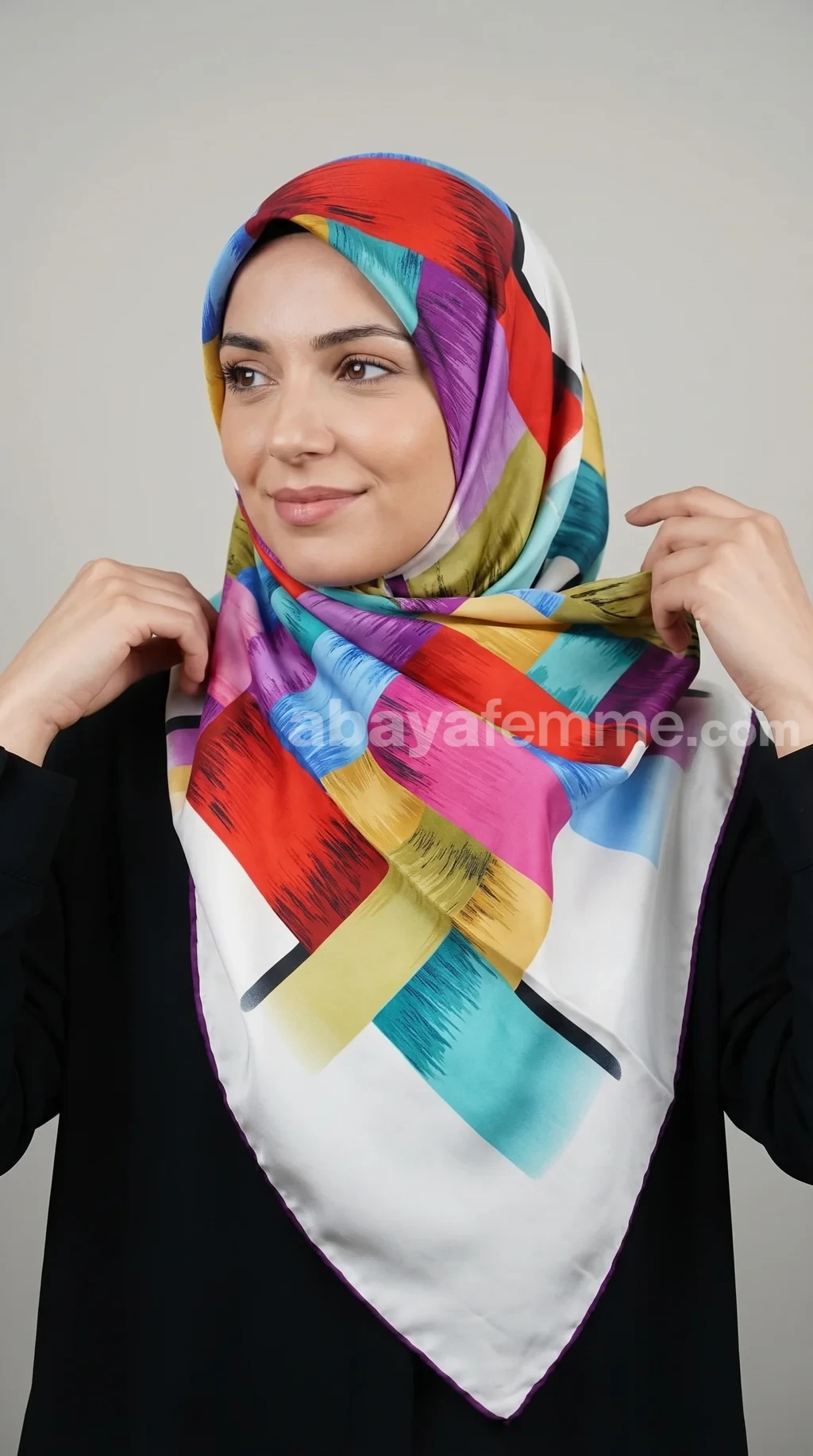 Au-delà de son aspect esthétique, ce foulard est une pièce polyvalente qui traverse les saisons. Son fini satiné irise délicatement les couleurs selon la lumière, offrant un éclat subtil à votre visage. Que vous le portiez comme un hijab sophistiqué ou comme un accessoire de mode classique, il apporte cette note de distinction propre aux collections de haute lignée. Sa légèreté (110g) permet un drapé fluide sans alourdir votre silhouette.