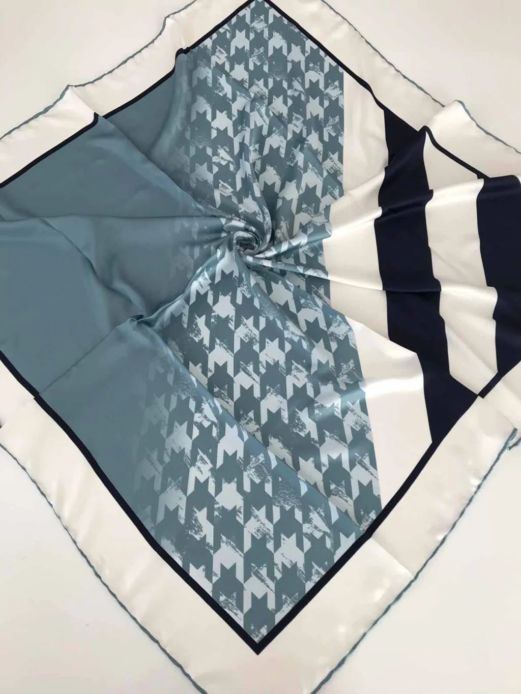 - Foulard carré tissé en Turquie arborant des motifs modernes