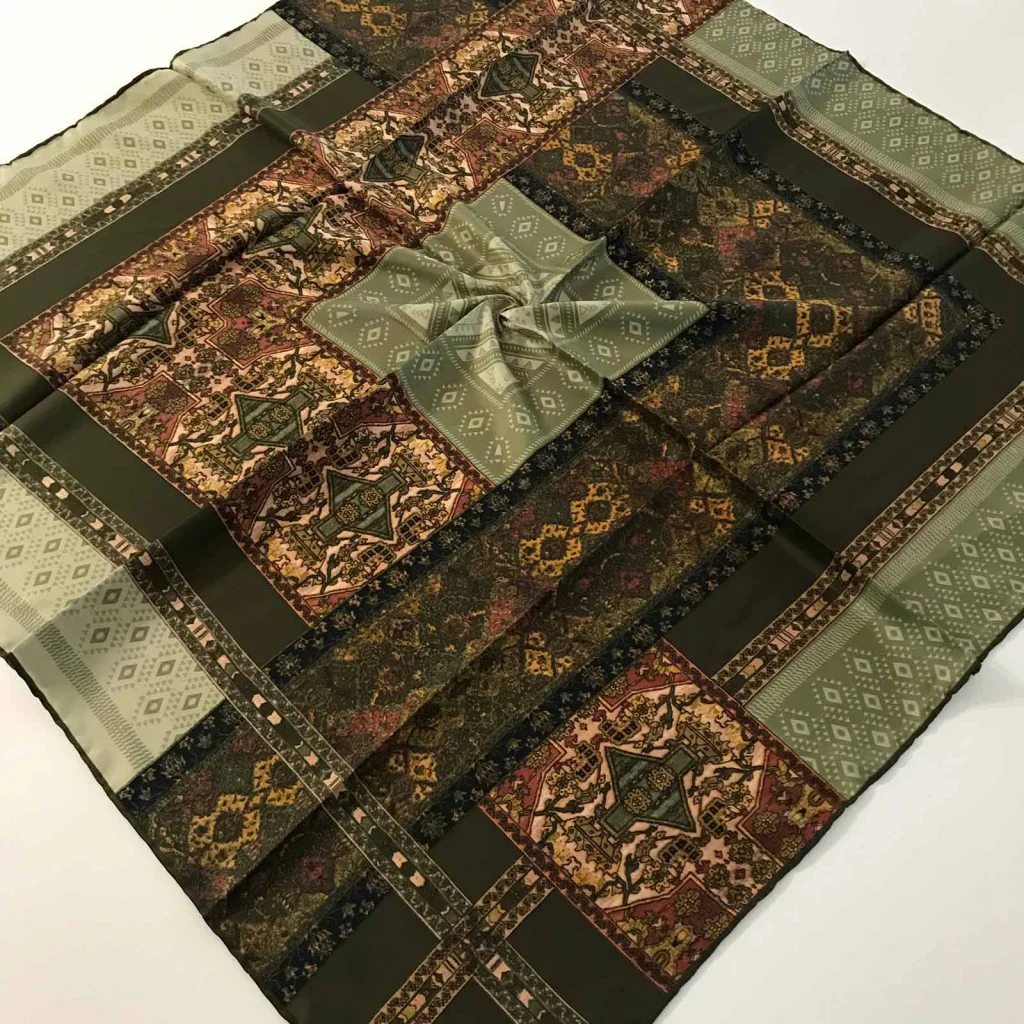 Foulard carré LUXE effet soie — 90×90 cm, motifs géométriques modernes