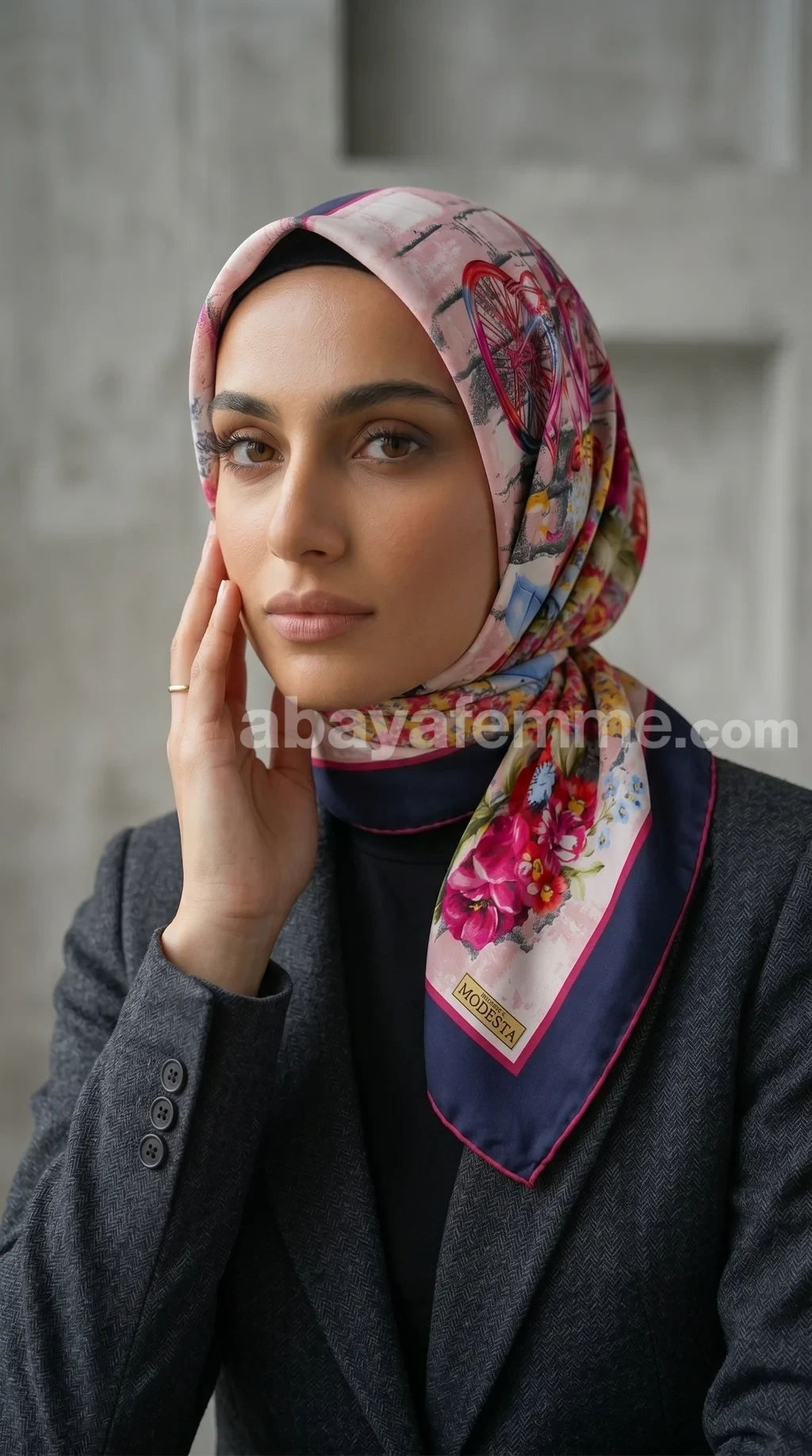 Bien qu’il possède un fini satiné soyeux, sa densité permet un bon maintien. Pour un port en hijab, nous conseillons vivement d’utiliser un sous-hijab ou un bandeau en coton.