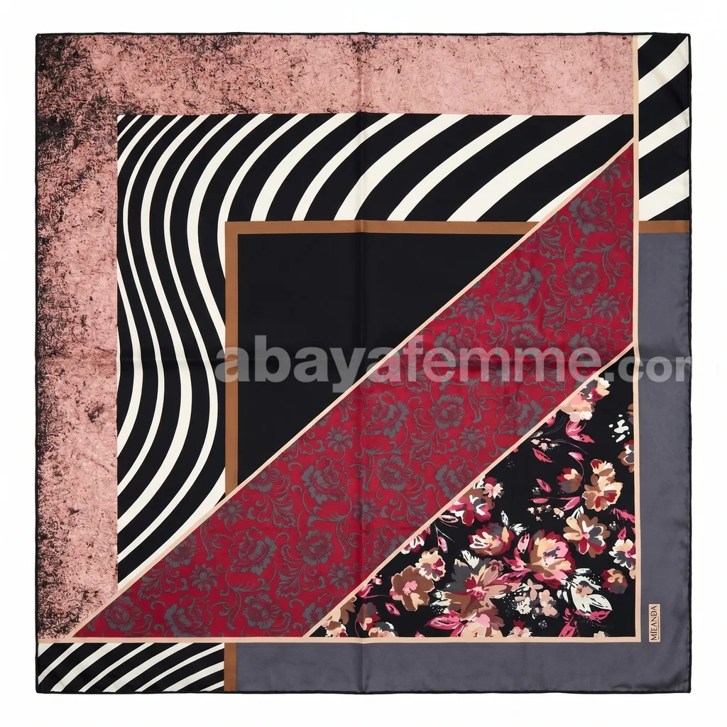 Ce foulard carré s’impose comme l’accessoire indispensable de la femme moderne en quête d’un équilibre parfait entre tradition et sophistication contemporaine.