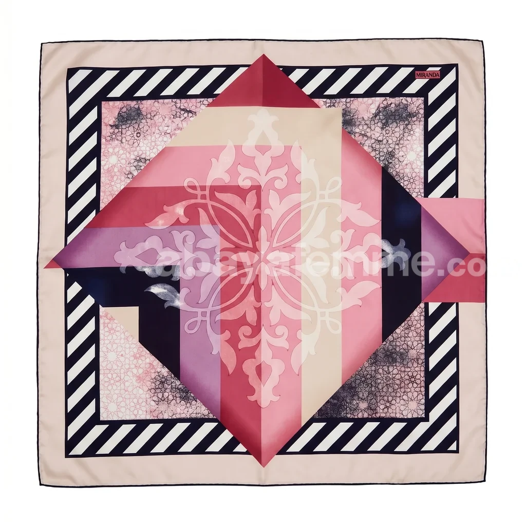 Ce modèle mesure 90×90 cm. C’est le format standard idéal pour réaliser tous types de drapés et de nœuds sophistiqués, que ce soit en hijab ou autour du cou.