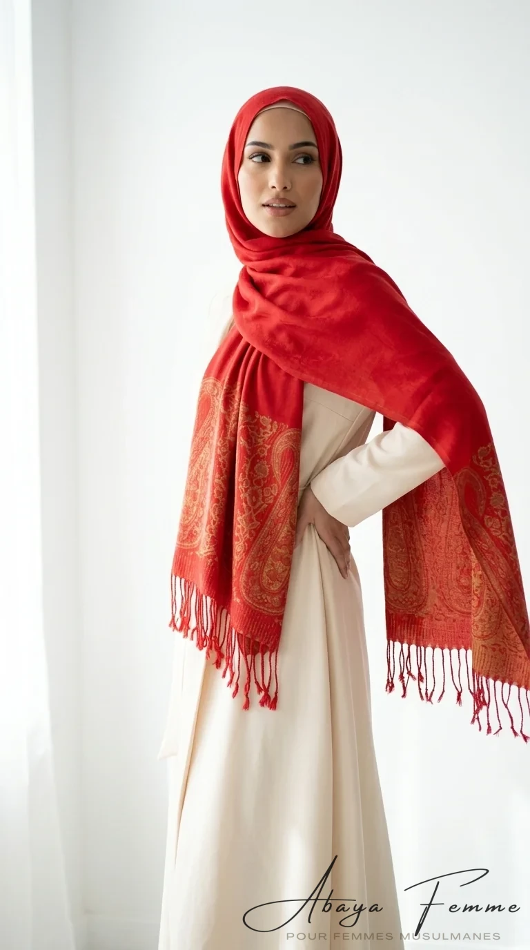 Pashmina Imprimé Rouge Rectangulaire Collection Classic PC08
