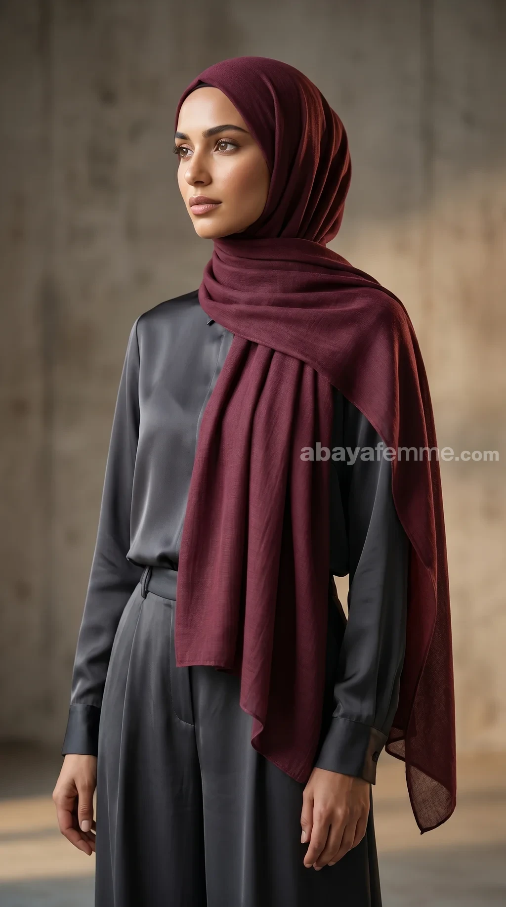Devenu l’un des accessoires les plus recherchés, le hijab bordeaux s’impose comme une pièce maîtresse pour la hijab femme moderne. Avec sa teinte rouge bordeaux vibrante, son tombé impeccable et son prix accessible, ce voile polyvalent illumine le teint et structure votre allure en un clin d’œil.