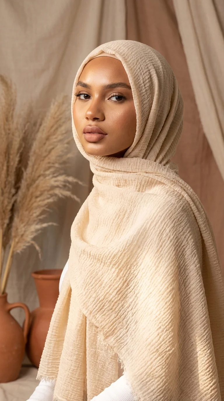 Hijab Froissé Beige Pas Cher: Élégance et Confort pour les Femmes Musulmanes