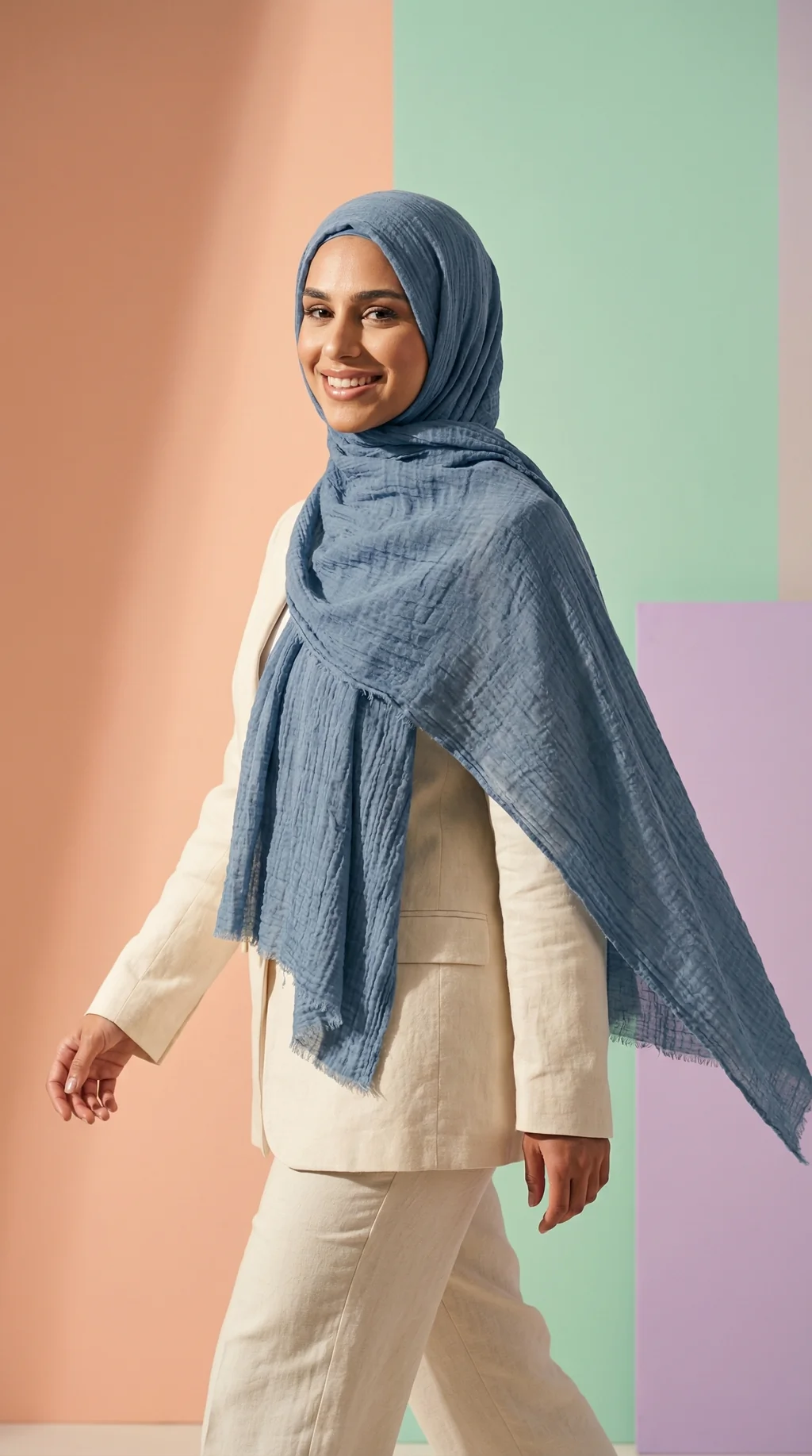 Matière du hijab: Tissu moderne à effet froissé Naturel Non Glissant