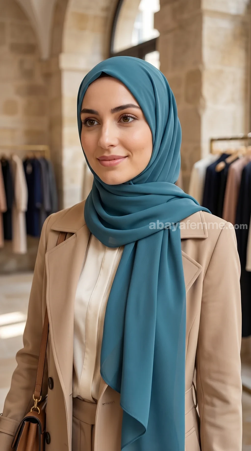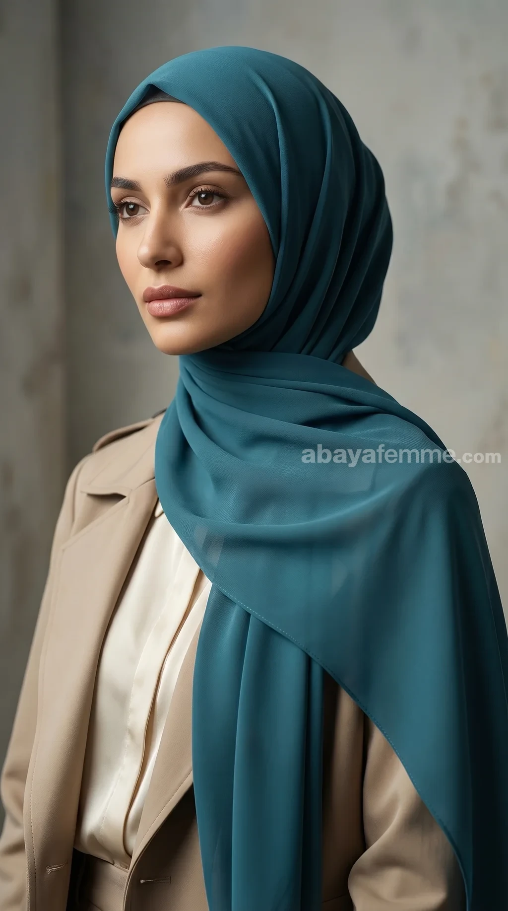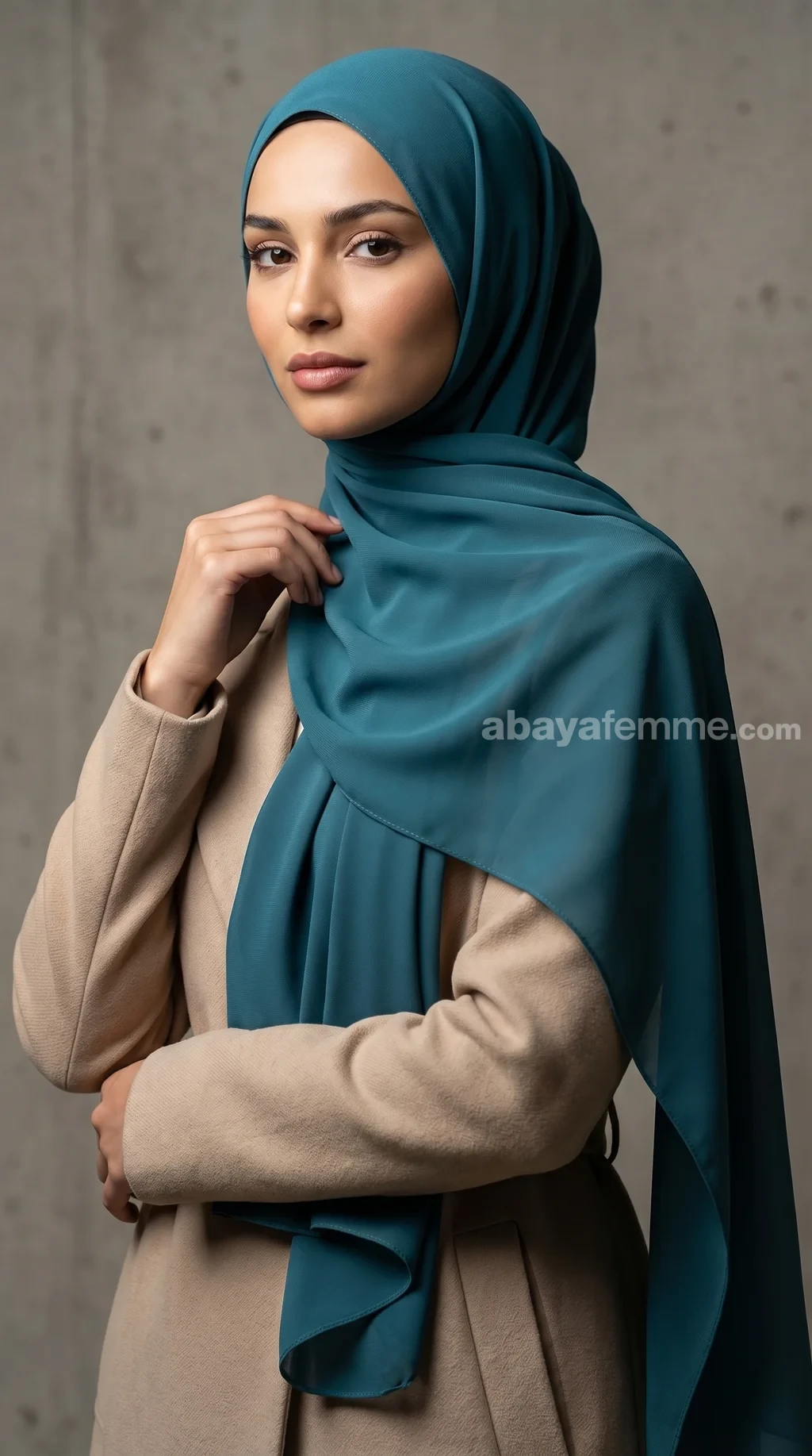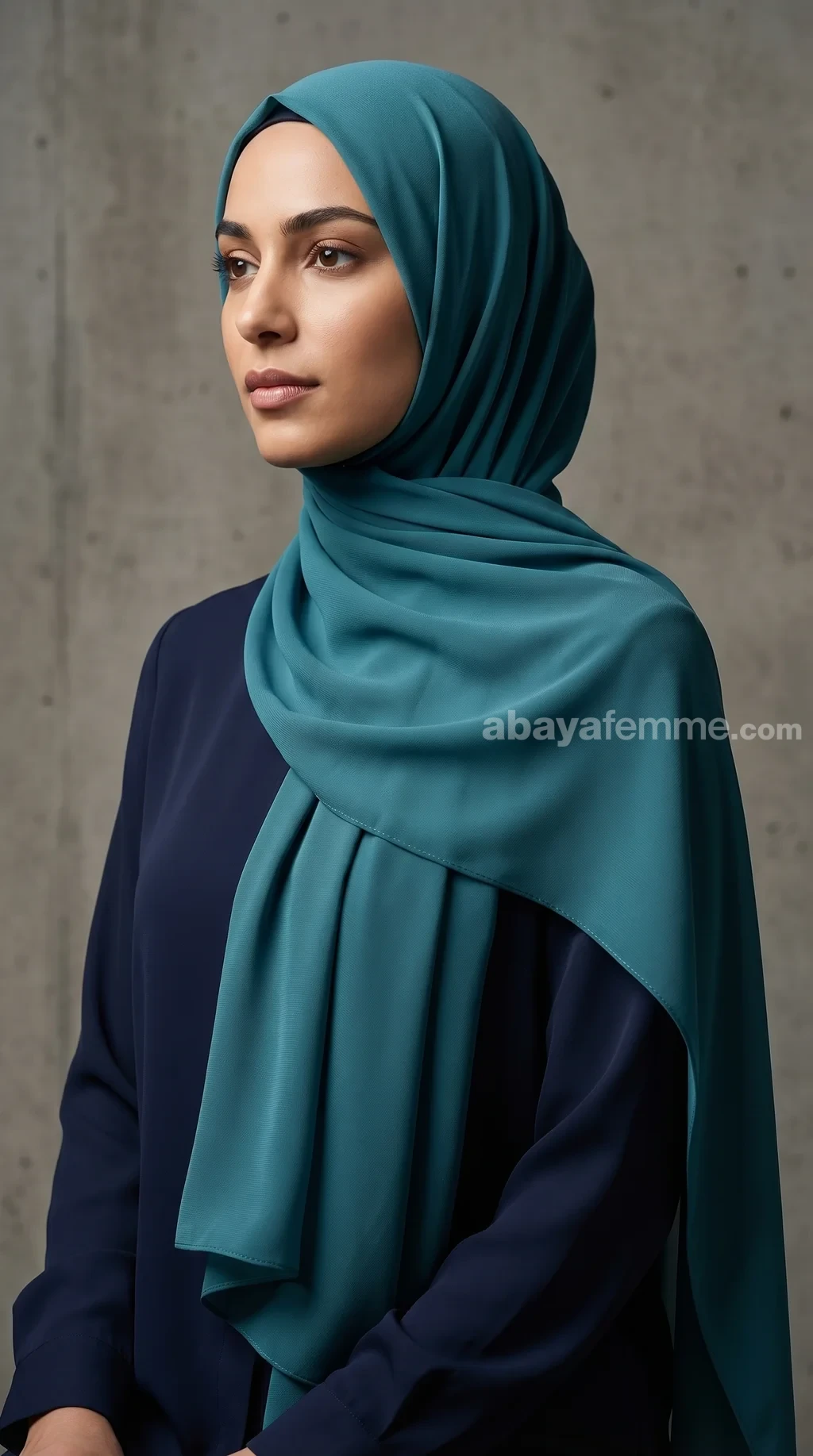 L’Élégance Fluide du hijab mousseline teal luxury mousseline