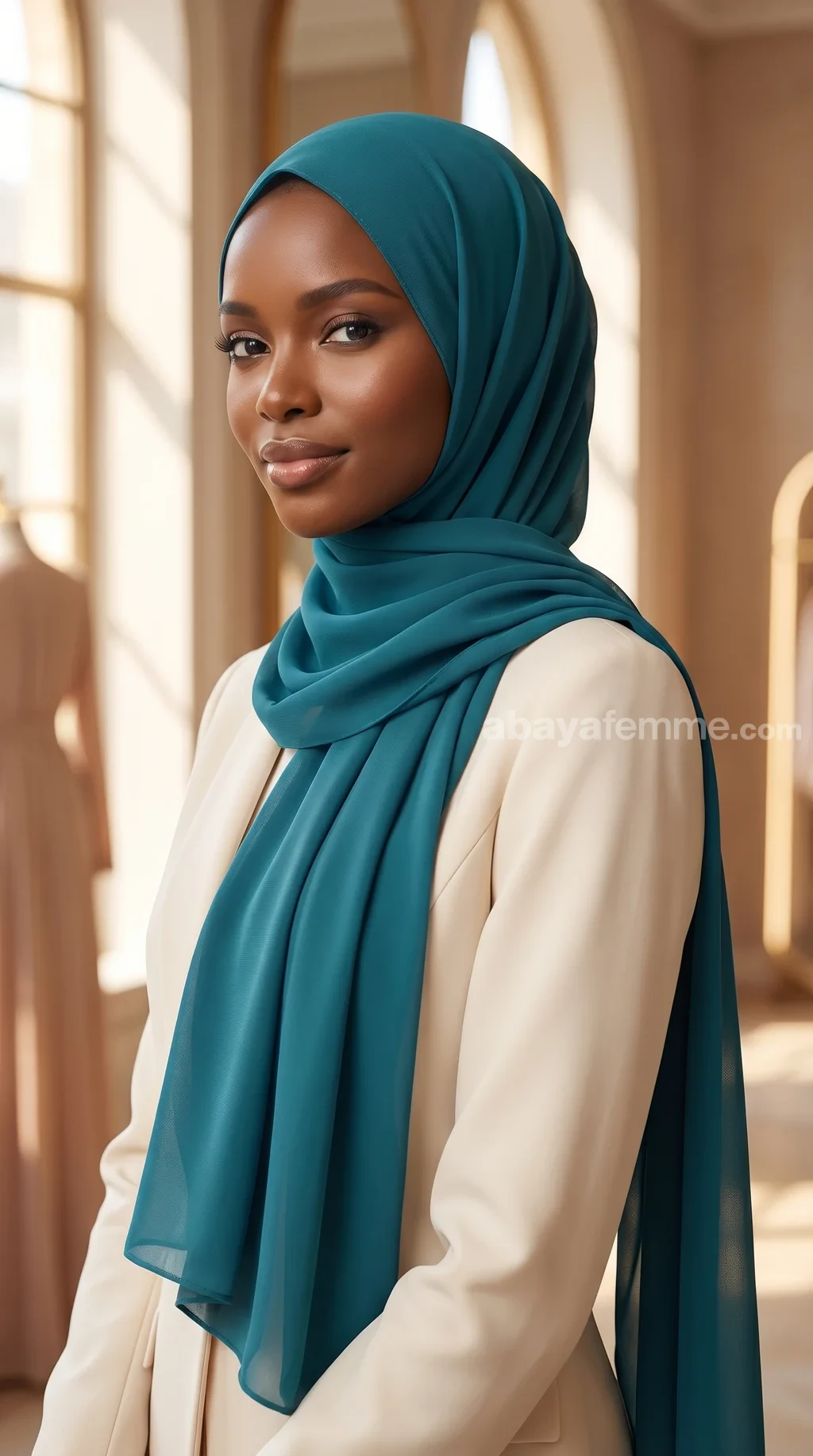 Plongez dans la sophistication absolue avec notre hijab mousseline teal luxury mousseline. Conçu pour les femmes en quête d’un style raffiné sans compromis sur le confort, ce voile majestueux offre un tombé impeccable. Sa teinte profonde et vibrante illumine le teint tout en apportant une touche de chic intemporel à votre garde-robe.