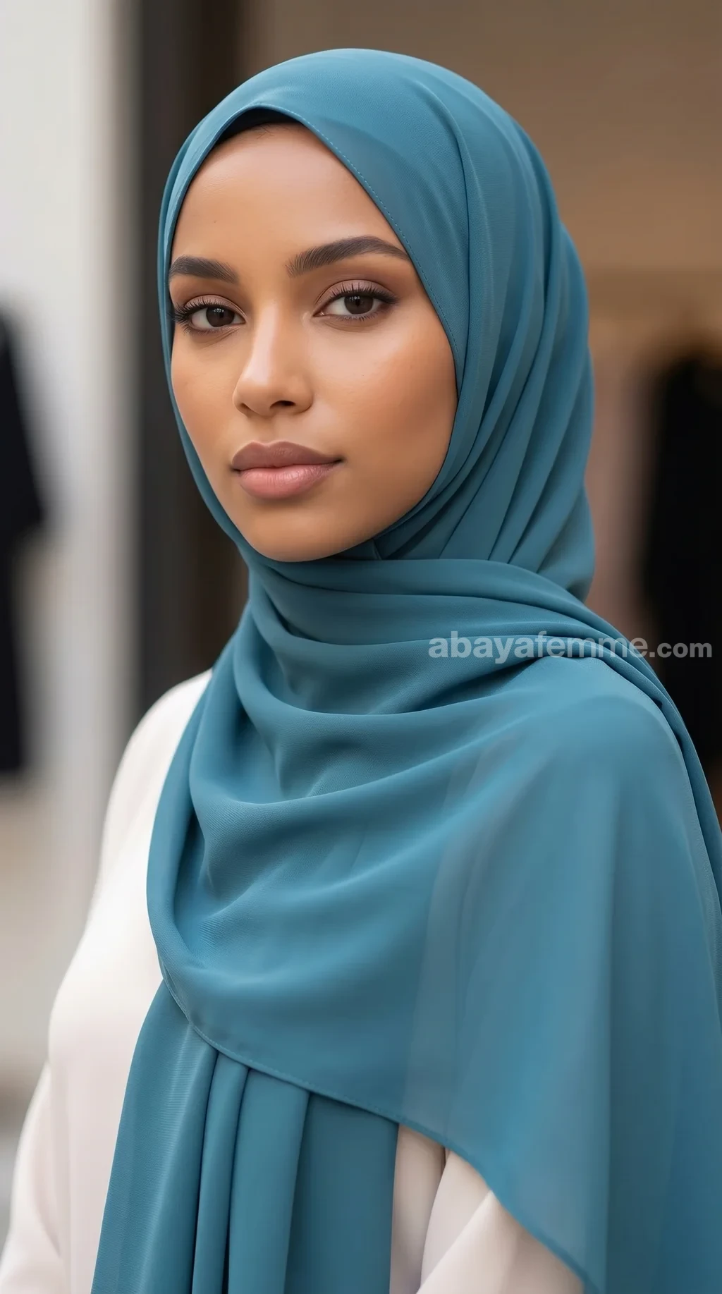 Sublimez vos tenues avec notre voile premium couleur bleu canard. Une mousseline fluide, légère et infiniment chic pour une élégance au quotidien.