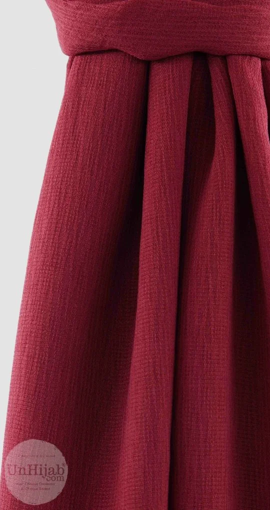 Découvrez notre Hijab Rectangulaire en Mousseline effet froissé dans une magnifique teinte Crimson. Ce hijab allie à la perfection qualité, style et confort, en faisant un accessoire incontournable pour toutes les femmes à la recherche d'une touche d'élégance dans leur tenue.