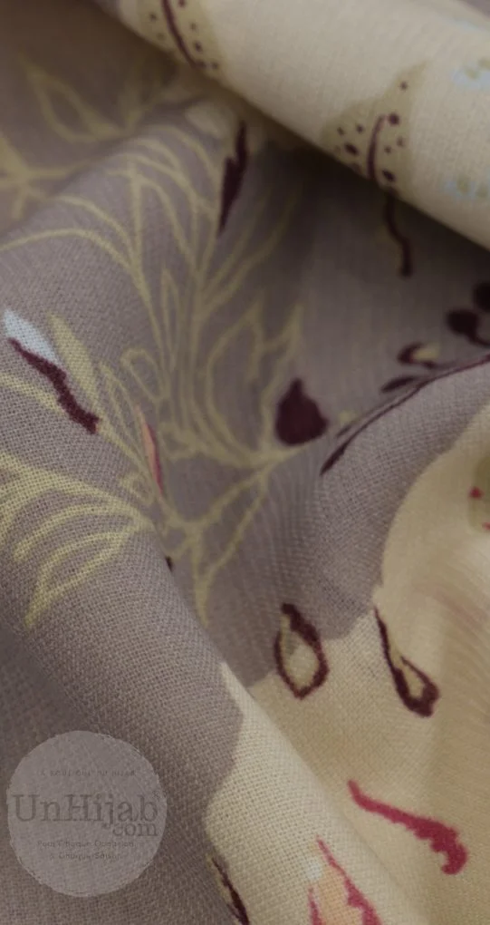 Contrairement au hijab mousseline froissé tan qui offre un aspect texturé et ne nécessite pas de repassage, ce modèle Luna imprimé possède une finition lisse, soyeuse et des motifs pour un rendu plus formel et habillé.