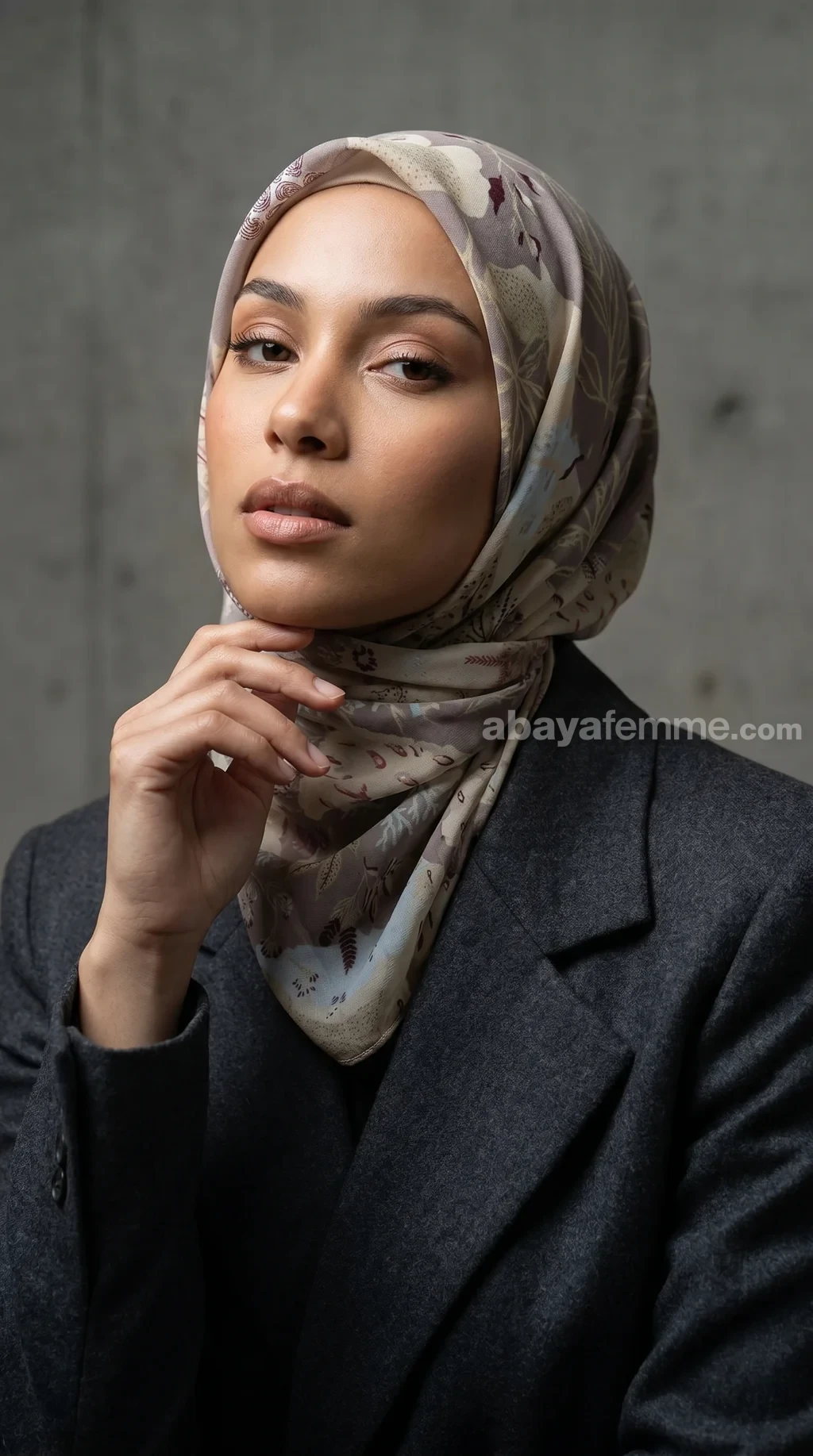 Nouez délicatement les extrémités sur le côté ou à l’arrière du cou. Une méthode parfaite pour mettre en valeur le col d’une abaya ou d’une chemise structurée.