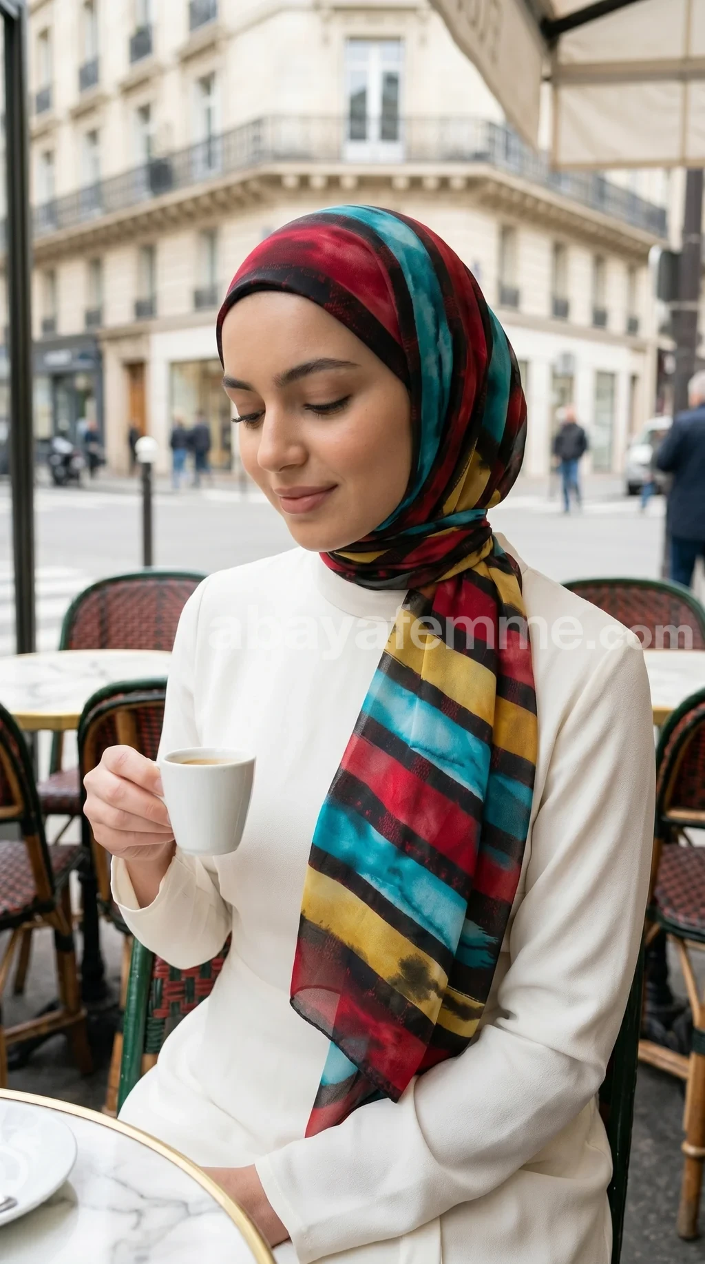 La mousseline est une matière naturellement vaporeuse et semi-transparente. Pour une couvrance totale, nous recommandons de porter un bonnet sous-hijab ou de doubler le tissu lors de la mise en place.