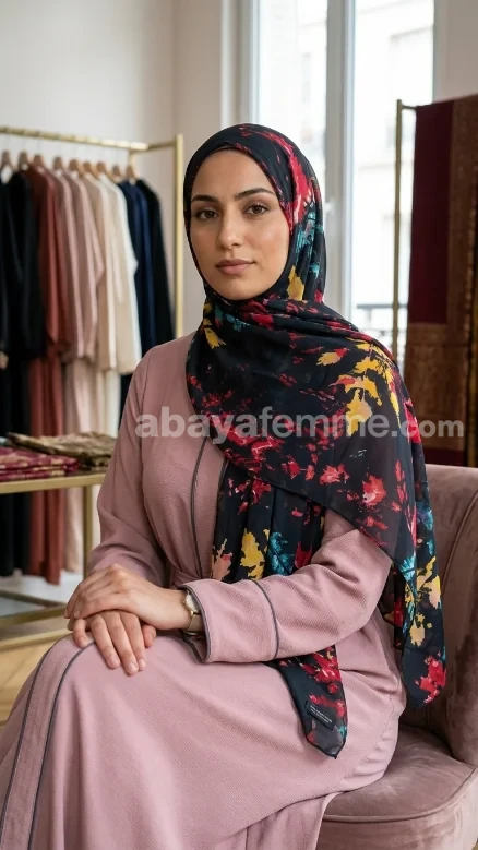 En raison de sa texture fluide, l’utilisation d’un bandeau en coton ou d’épingles magnétiques est fortement recommandée pour maintenir votre hijab en place sans abîmer le tissu délicat.