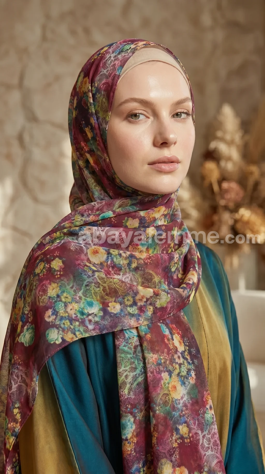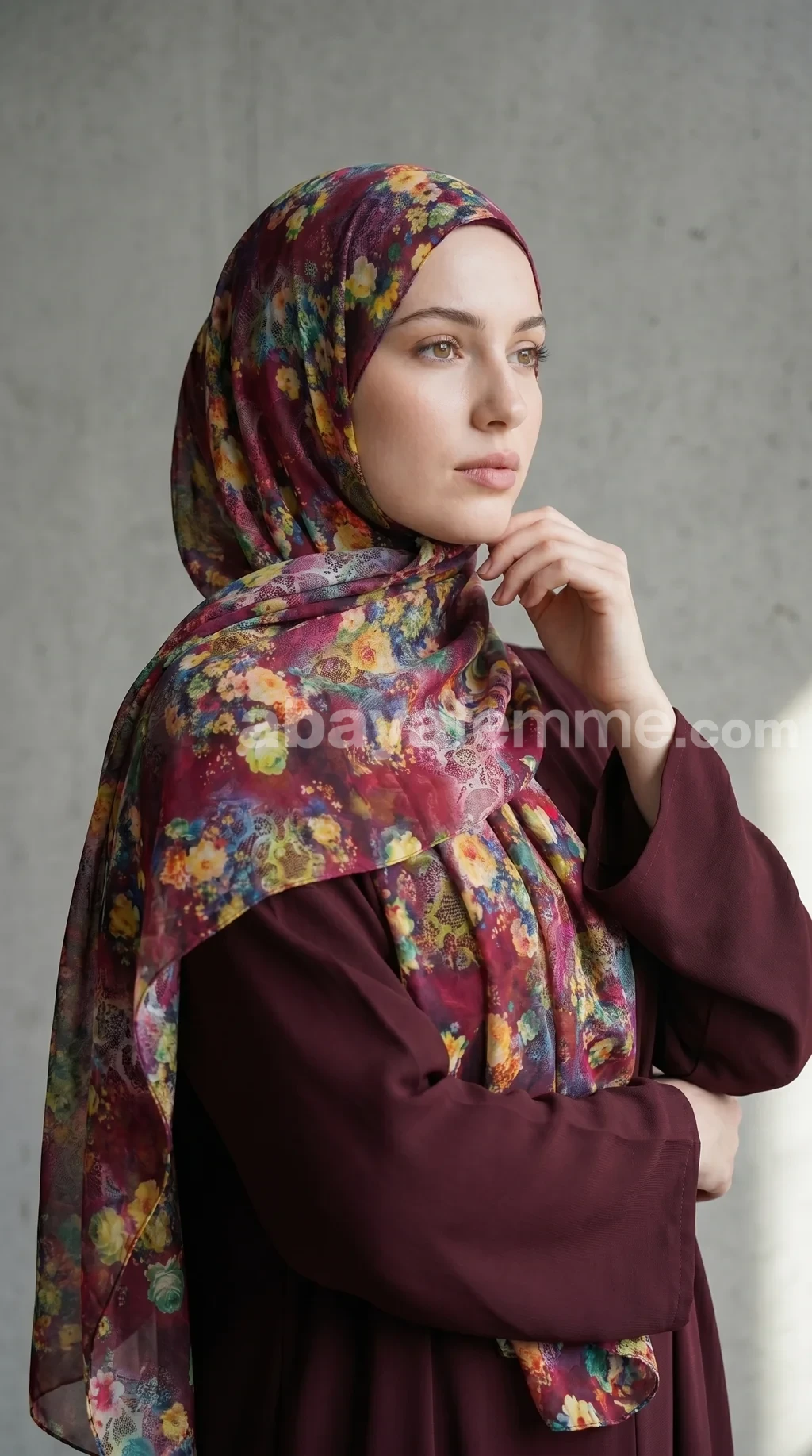 Incontournable de la garde-robe pudique, ce voile redéfinit les standards du raffinement. En associant la fluidité légendaire d’une mousseline de haute qualité à des imprimés floraux d’une rare délicatesse, il devient l’atout maître de vos tenues les plus sophistiquées.