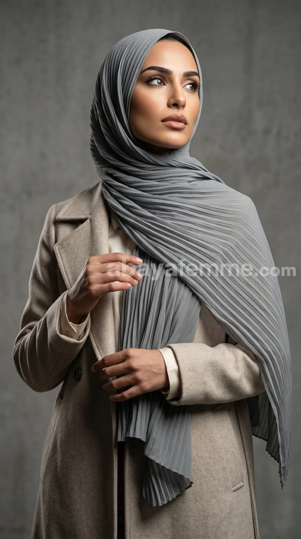 Hijab Mousseline Plissé Gris Wisteria Collection: Pour une Élégance au Quotidien