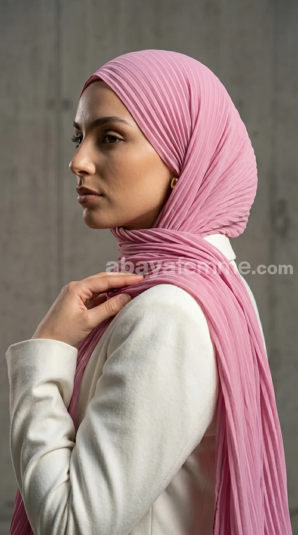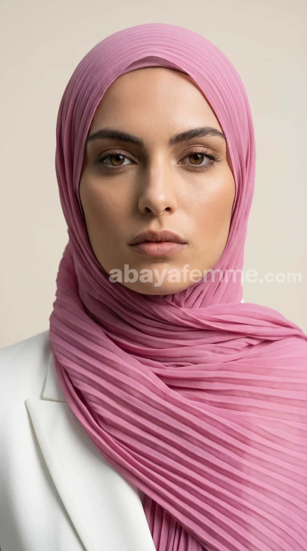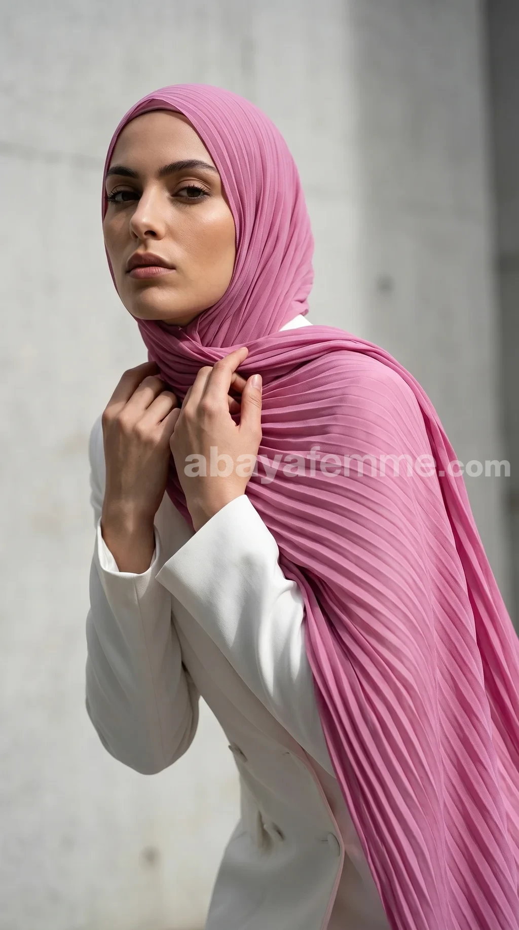 Sublimez votre allure avec ce hijab en mousseline plissée d’une légèreté incomparable. Sa teinte rose délicate et sa texture accordéon apportent une touche de sophistication immédiate à toutes vos tenues.