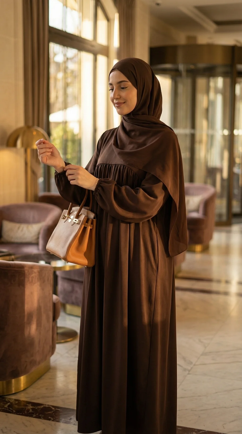 Abaya marron chocolat Soie de Médine élégante et fluide, idéale pour une tenue mastour chic et intemporelle.
