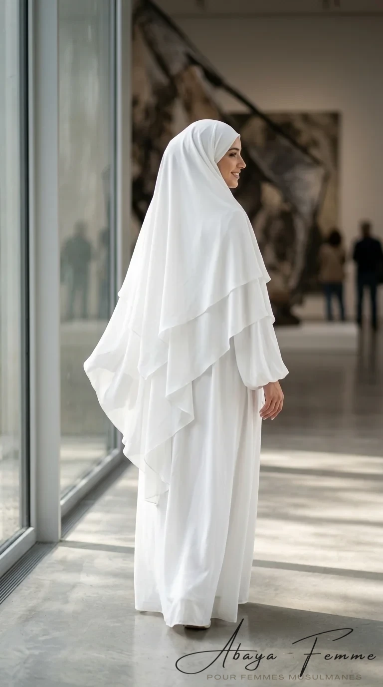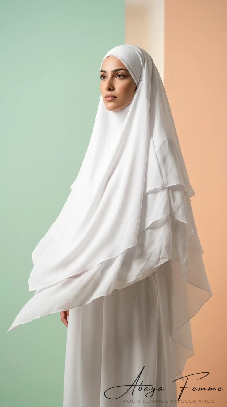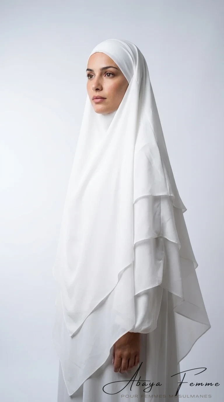 Khimar 3 Voiles Blanc en Mousseline: L’Élégance au Service de la Modestie
