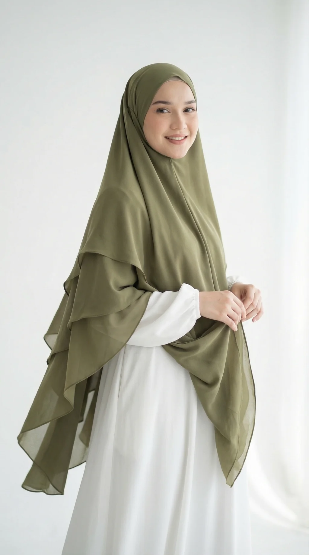 Ne manquez pas cette pièce exceptionnelle qui allie mode, fonctionnalité et confort. Ajoutez le khimar 3 voiles Kaki en mousseline à votre garde-robe dès aujourd’hui !