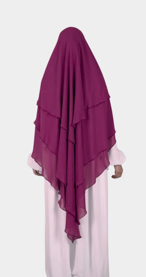 Acheter notre Khimar 3 Voiles Mousseline de couleur Mauve pour une Élégance Réinventée