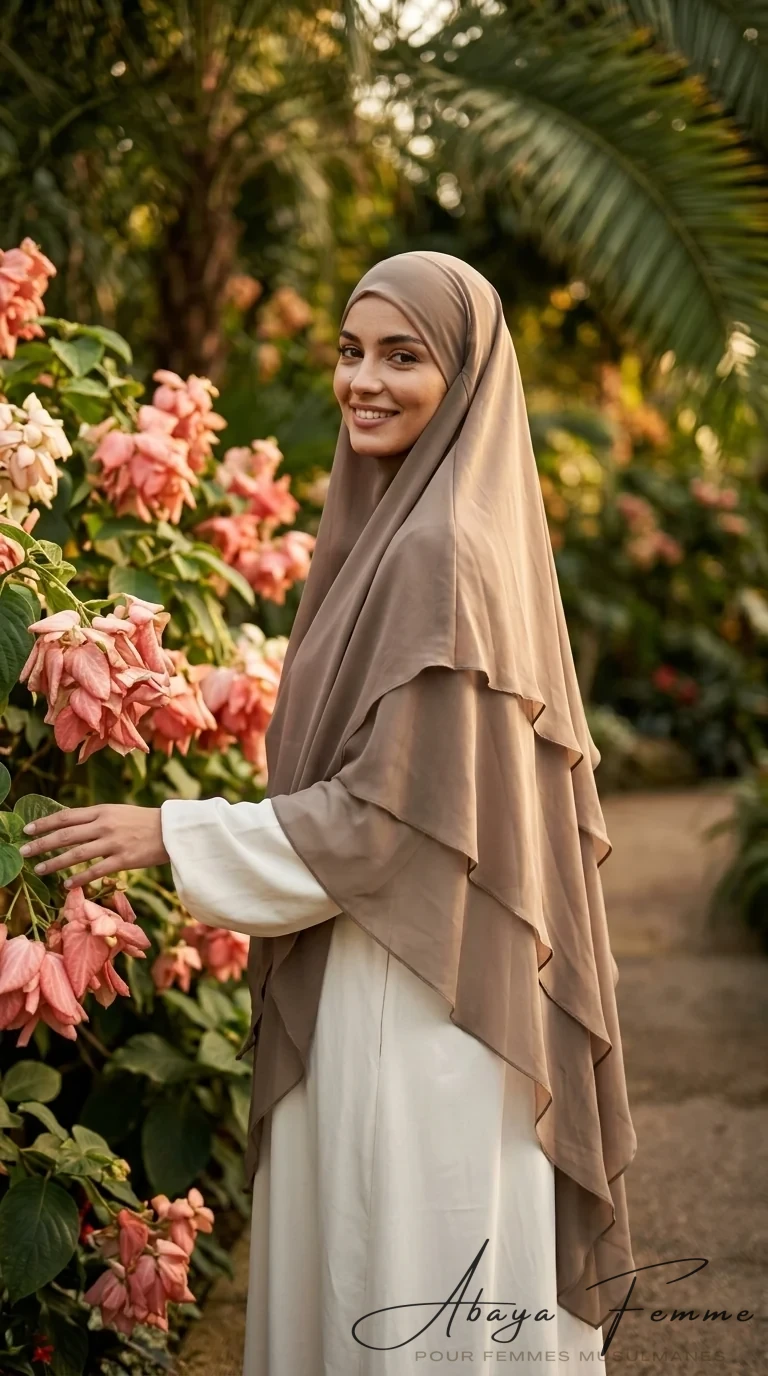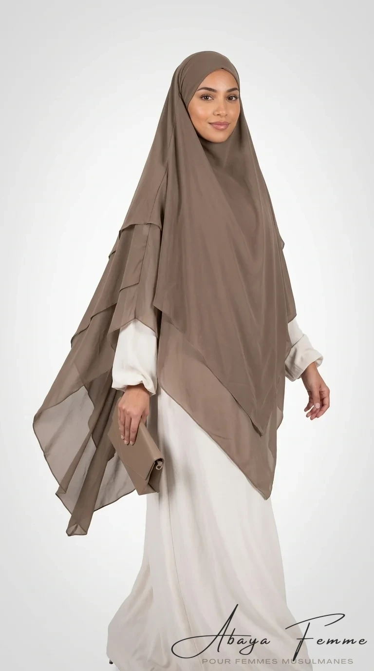 Pourquoi Choisir Notre Khimar 3 Voiles Taupe en Mousseline ?