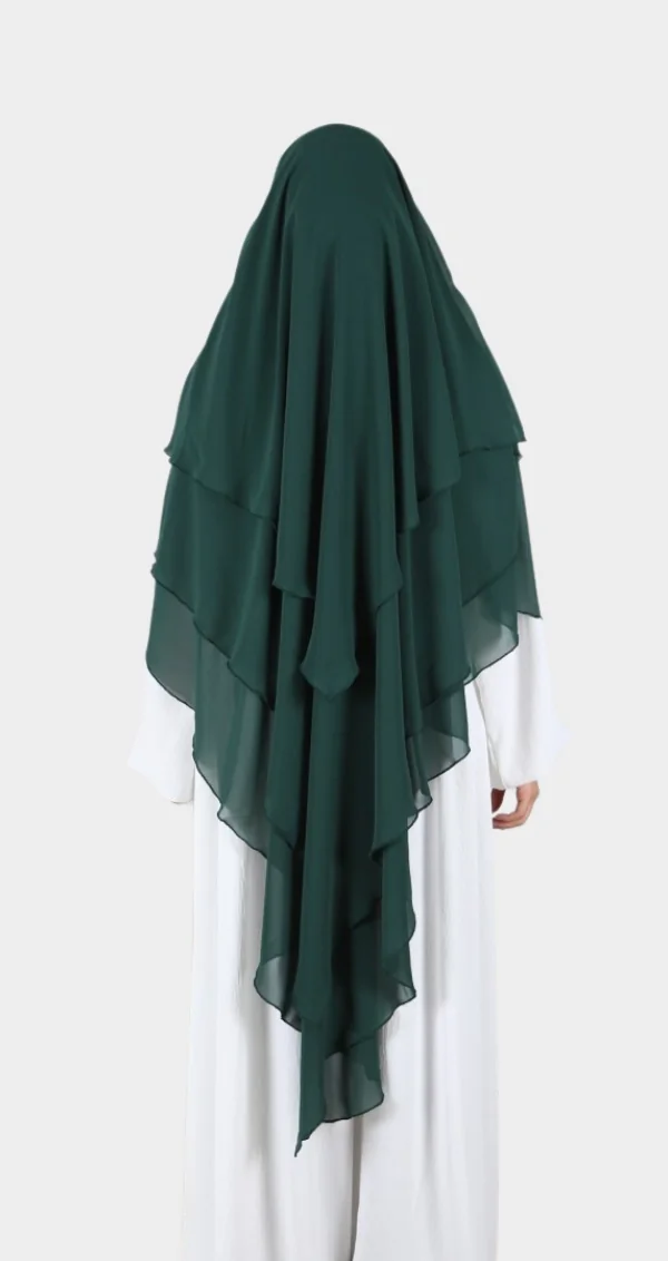 Khimar 3 Voiles vert sapin en mousseline : Un Choix Élégant et Confortable