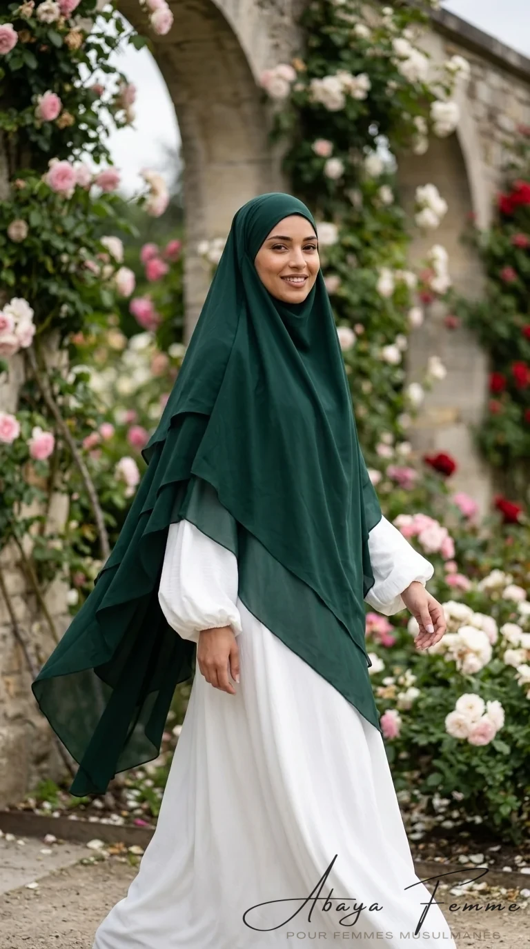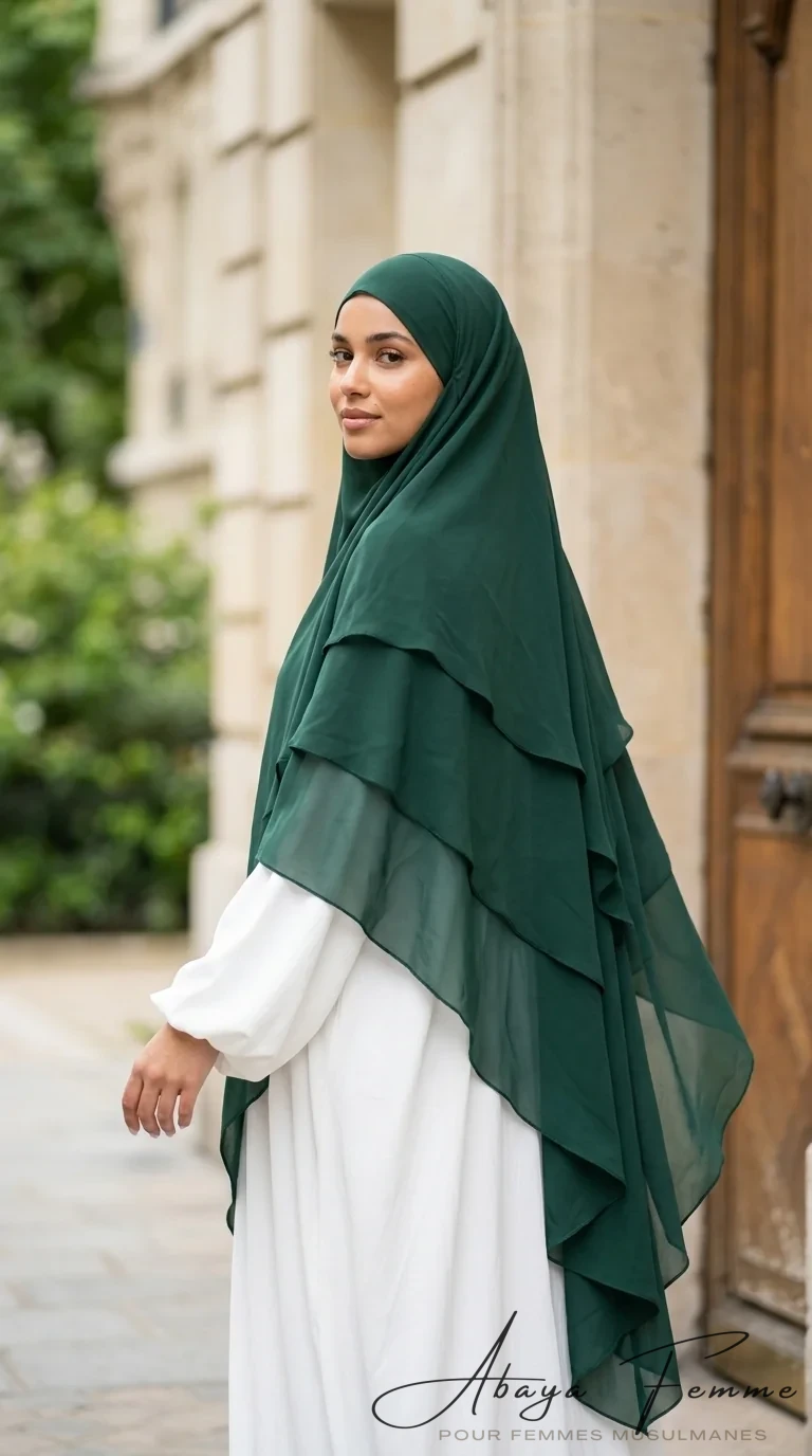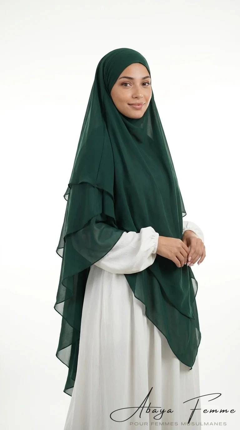 Bienvenue sur abayafemme.com, votre référence pour une mode pudique et élégante. Aujourd’hui, nous sommes ravis de vous présenter notre dernier ajout à notre collection, le Khimar 3 Voiles vert sapin en mousseline. 🌿 Ce khimar est non seulement confortable mais aussi très chic, ce qui le rend idéal pour toutes les occasions.