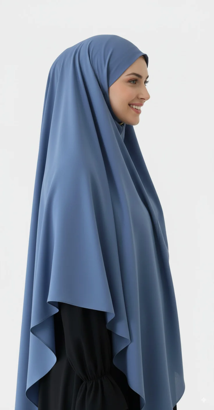 🌸 Khimar Soie de Médine Denim : Un Khimar pas cher, fabriqué en France, pour un style pudique et tendance 🧵