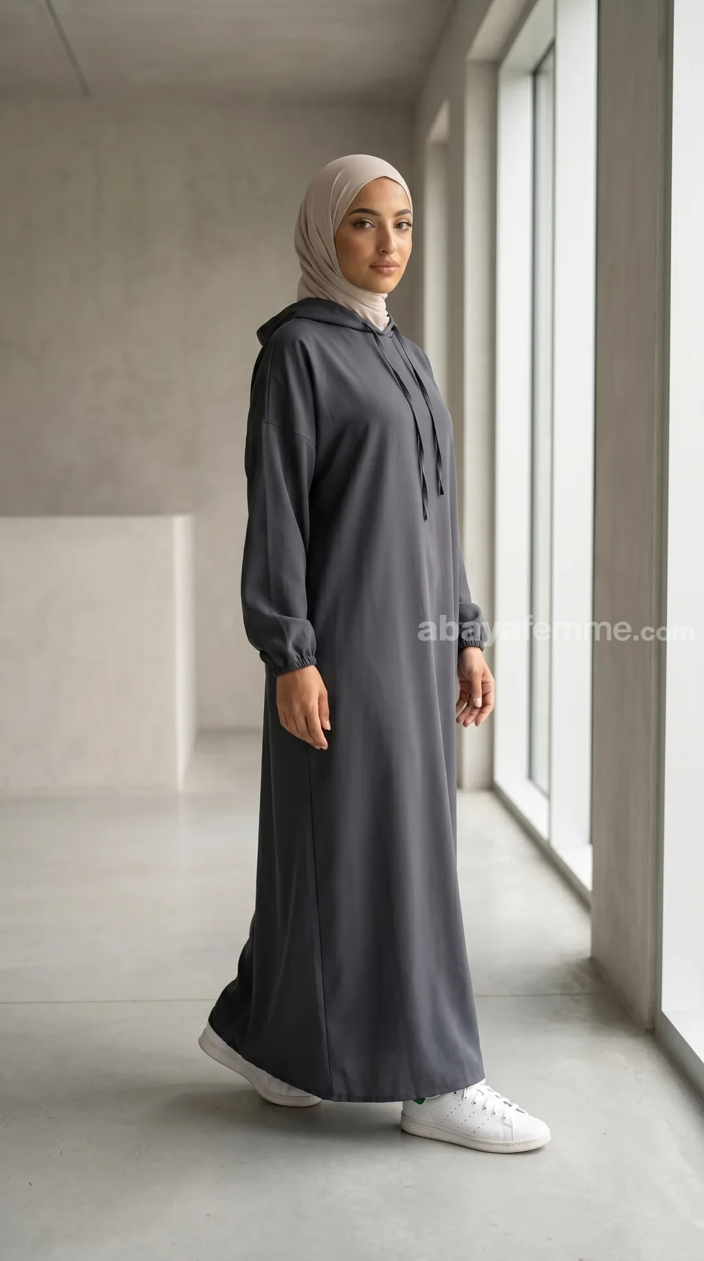 L’élégance décontractée avec l’abaya à capuche en bi-stretch grise