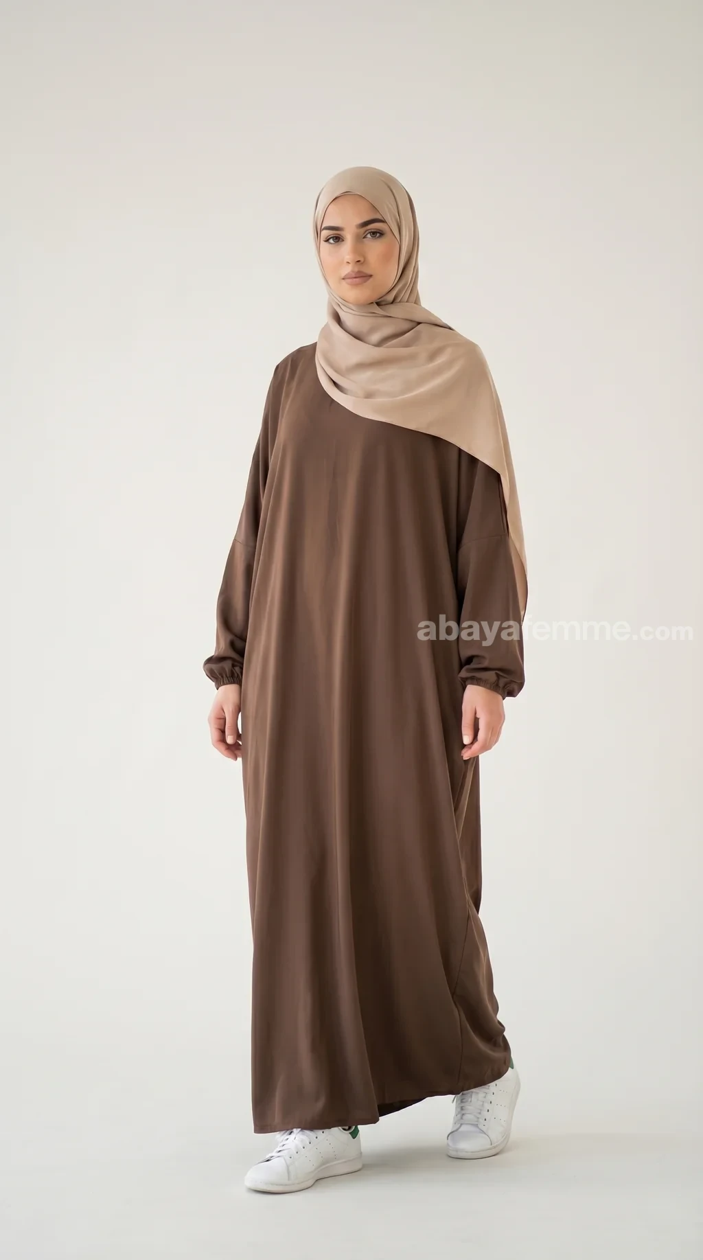 Au-delà de son prix très accessible, cette robe longue modeste incarne la quintessence du chic minimaliste. La teinte marron, chaude et réconfortante, s’inscrit parfaitement dans les tendances actuelles tout en restant un classique indémodable. La soie de Médine, matière noble par excellence dans la mode modeste, vous garantit une opacité totale sans sacrifier la légèreté. Que vous cherchiez une tenue pour vos prières, pour l’école ou pour une sortie habillée, elle enveloppe votre silhouette avec grâce et dignité.