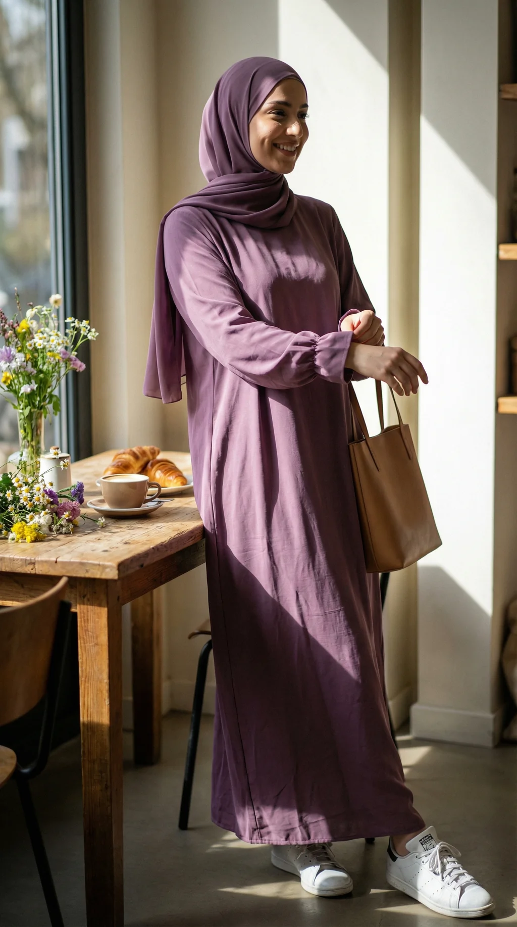 Cette abaya mauve est idéale si tu veux une tenue sobre, chic et facile à porter. Sa coupe longue et ample assure un maximum de confort tout en gardant une silhouette harmonieuse. Une pièce simple, mais super élégante, à porter aussi bien tous les jours que pour une sortie.