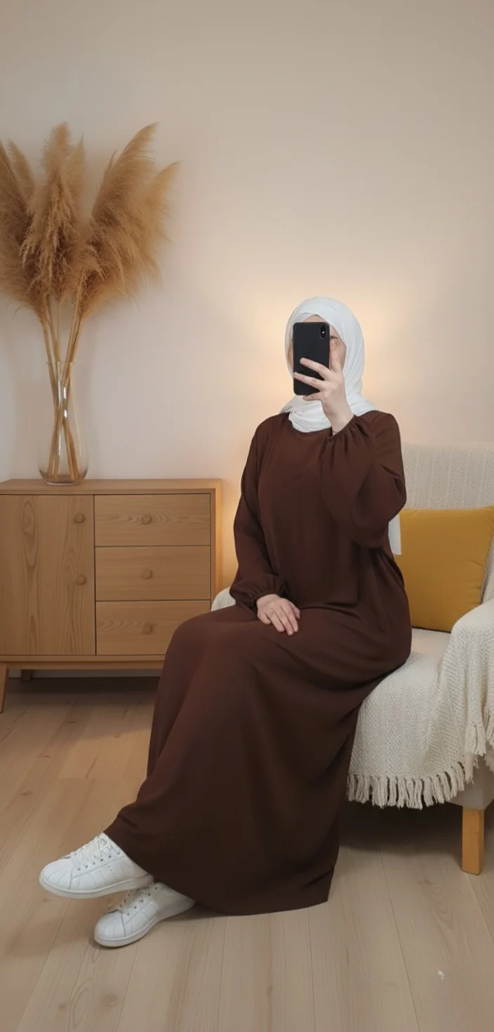 Investissez dans votre style, investissez dans votre foi. Découvrez notre Abaya Marron Simple Longue et Ample avec Manches Élastiques aujourd’hui.