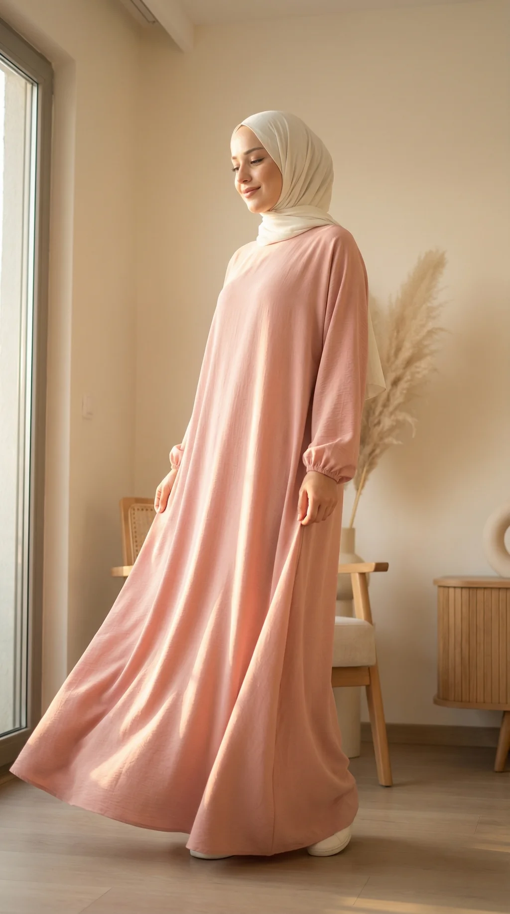 Abaya Rose Simple Longue et Ample avec Manches Élastiques : L’Élégance Rencontre la Pudeur