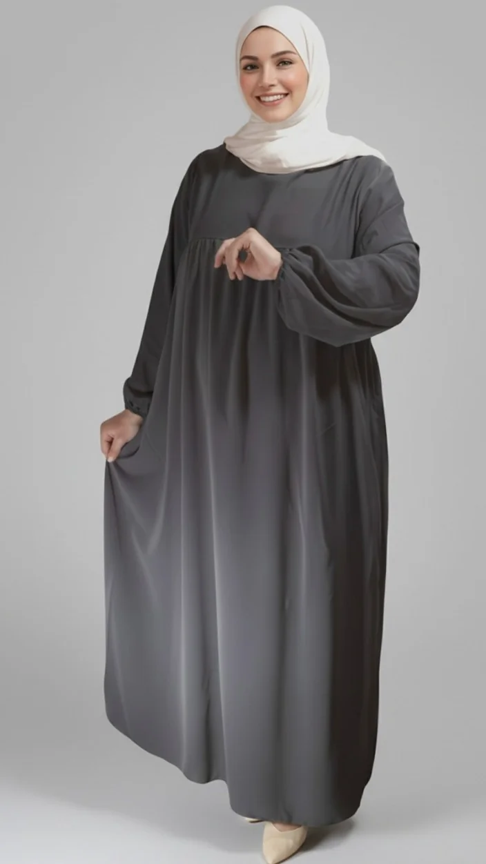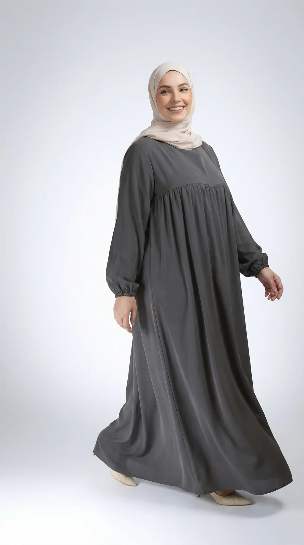 Découvrez le Charme Élégant de Notre Abaya Soie de Médine évasée Gris Foncé