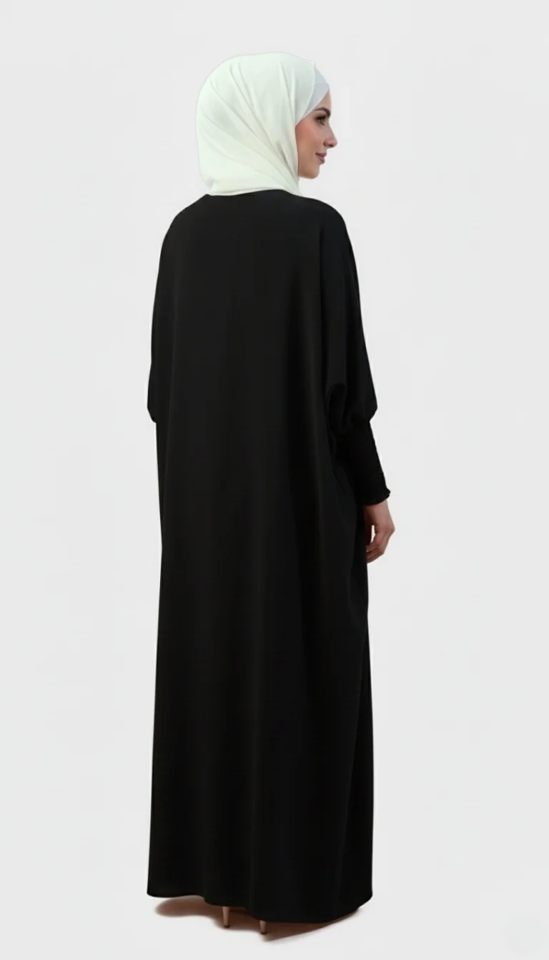 Abaya Soie de Médine Noir Manche Papillon : Élégance et Confort pour la Femme Musulmane