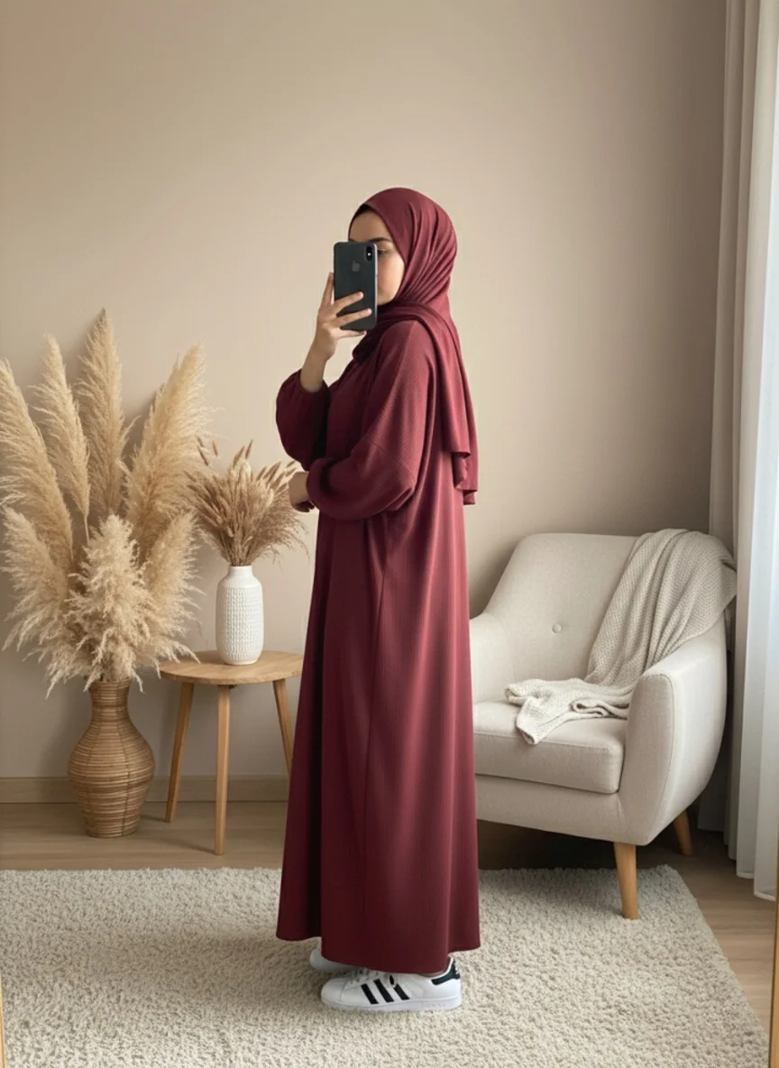 Abaya Terracotta Simple Longue et Ample: Élégance et Modestie Réunies