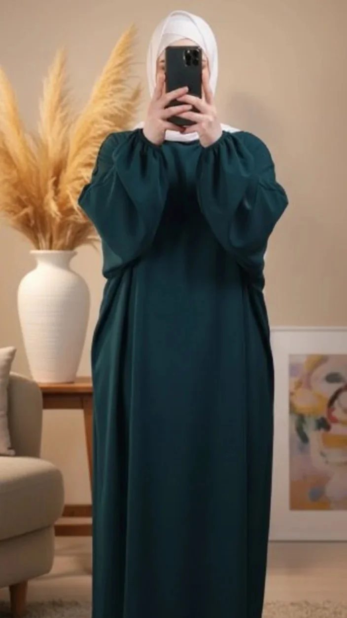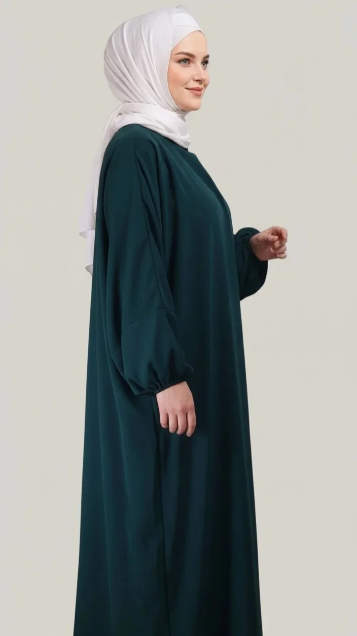 Abaya Vert Canard Simple Longue et Ample avec Manches Élastiques : Élégance et Confort au Quotidien
