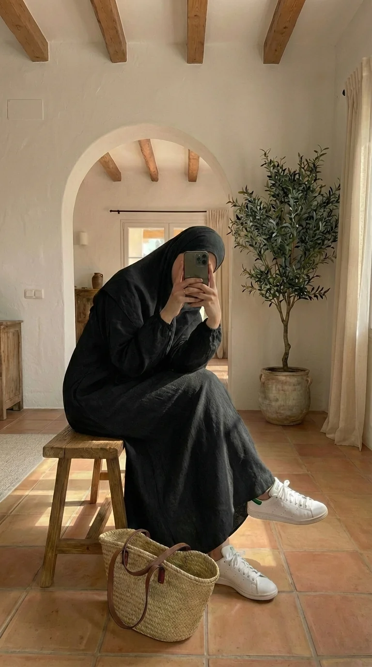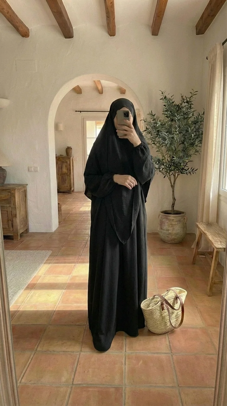 Ce jilbeb noir est l’essentiel intemporel à avoir dans sa garde-robe pudique : une coupe ample qui assure un tombé naturel et une silhouette harmonieuse, tout en restant confortable toute la journée.