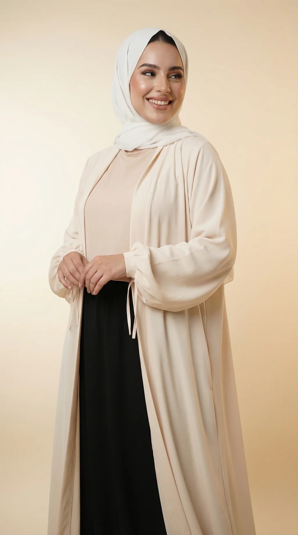 Kimono Abaya en Soie de Médine Beige avec Manches à Nœud: Un Vêtement d’Élégance et de Confort