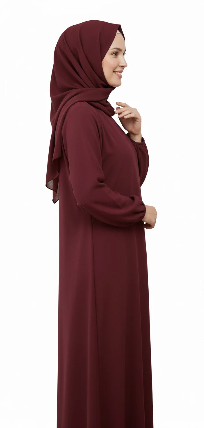 La caractéristique la plus remarquable de cette abaya est sans doute son voile intégré, une innovation qui simplifie la vie. Fini le casse-tête matinal pour assortir votre hijab à votre tenue ! Ce design soigneusement pensé garantit une harmonie parfaite entre votre robe et votre voile, offrant une allure cohérente et sophistiquée en toute occasion.