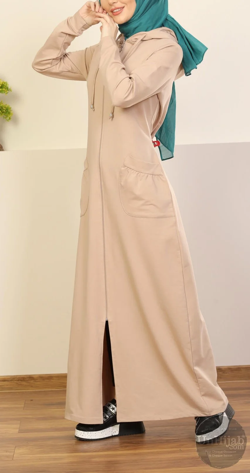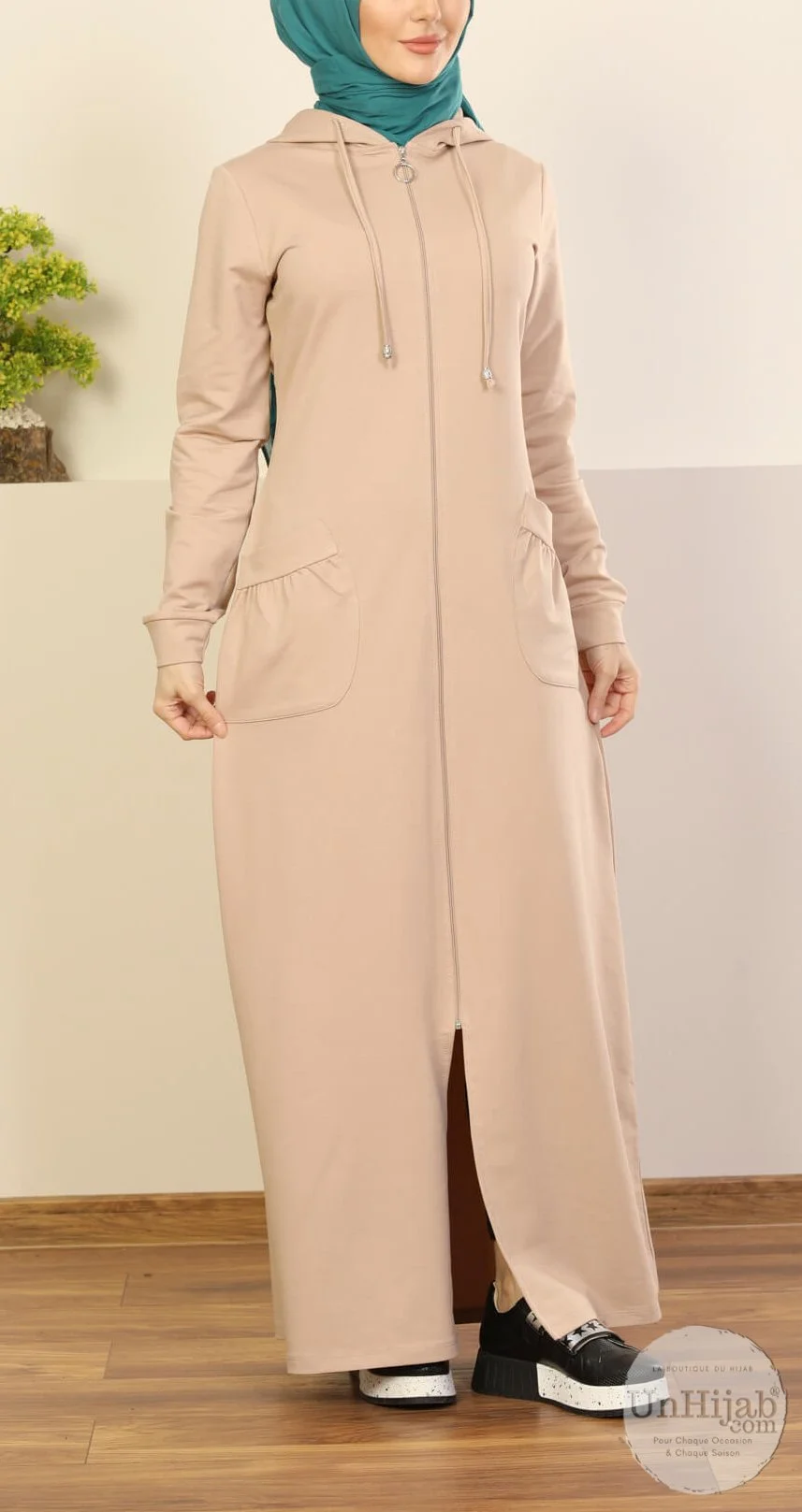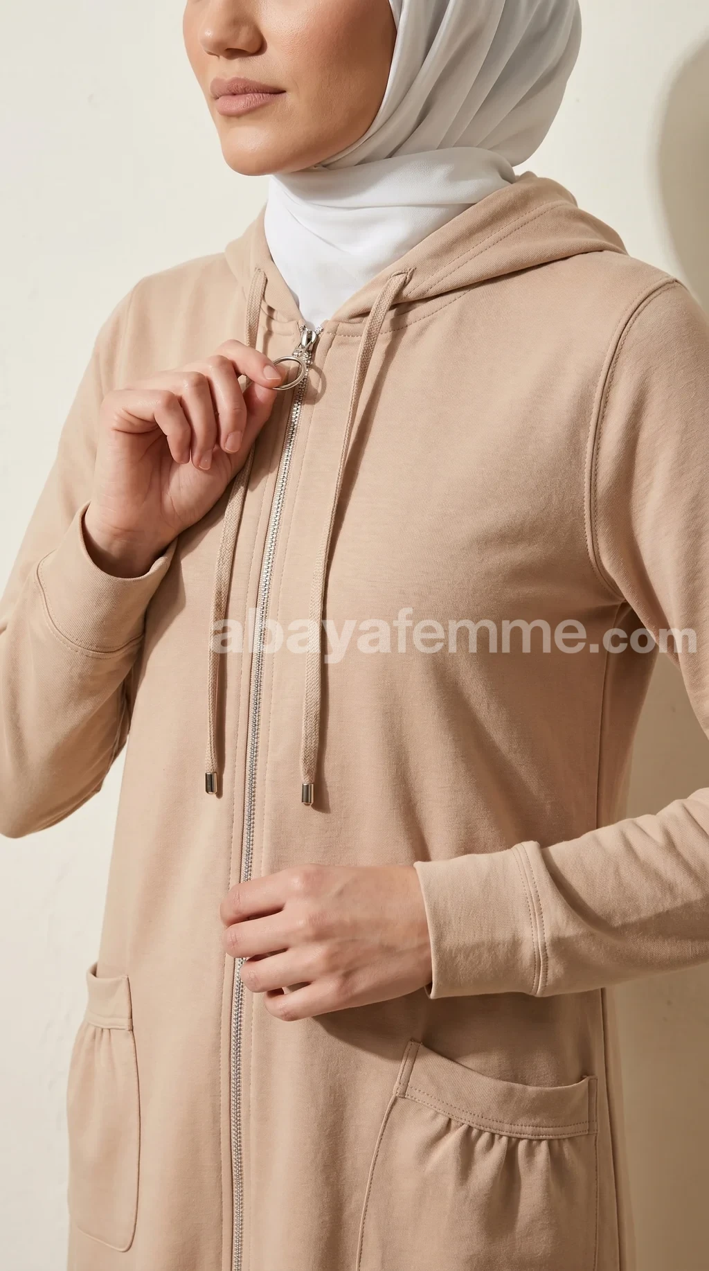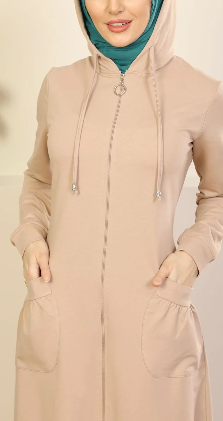 Succombez au confort absolu de notre sweat long femme beige, une pièce zippée élégante conçue pour sublimer votre quotidien tout en respectant les codes de la pudeur.