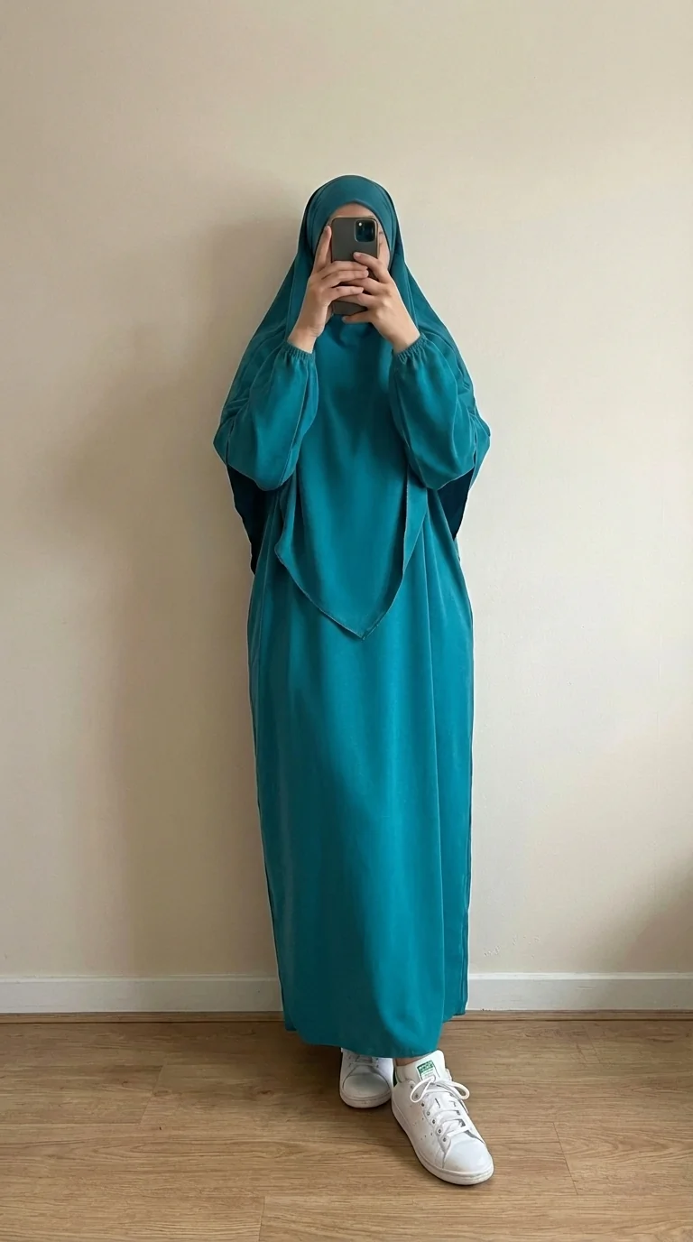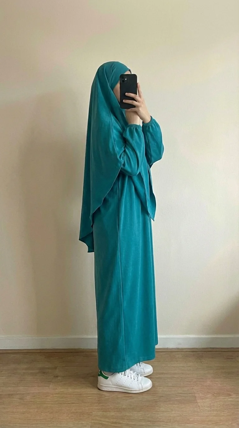 Ce jilbeb bleu canard apporte du caractère tout en gardant une allure sobre et mastour. Sa coupe ample assure un tombé naturel et une grande aisance au quotidien, que ce soit pour la prière, les sorties ou une journée confortable à la maison.