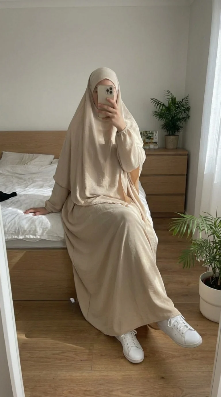 Ce jilbeb crème apporte une touche naturelle et raffinée à tes tenues modest fashion. Sa coupe ample assure un tombé harmonieux, tout en offrant un confort idéal pour la journée, la prière ou les sorties.