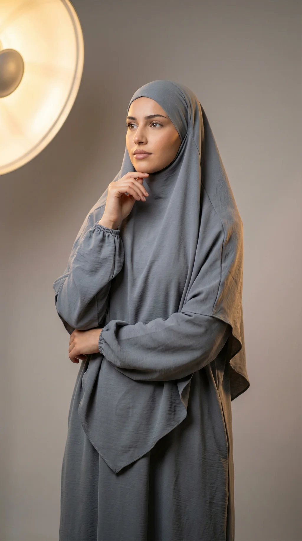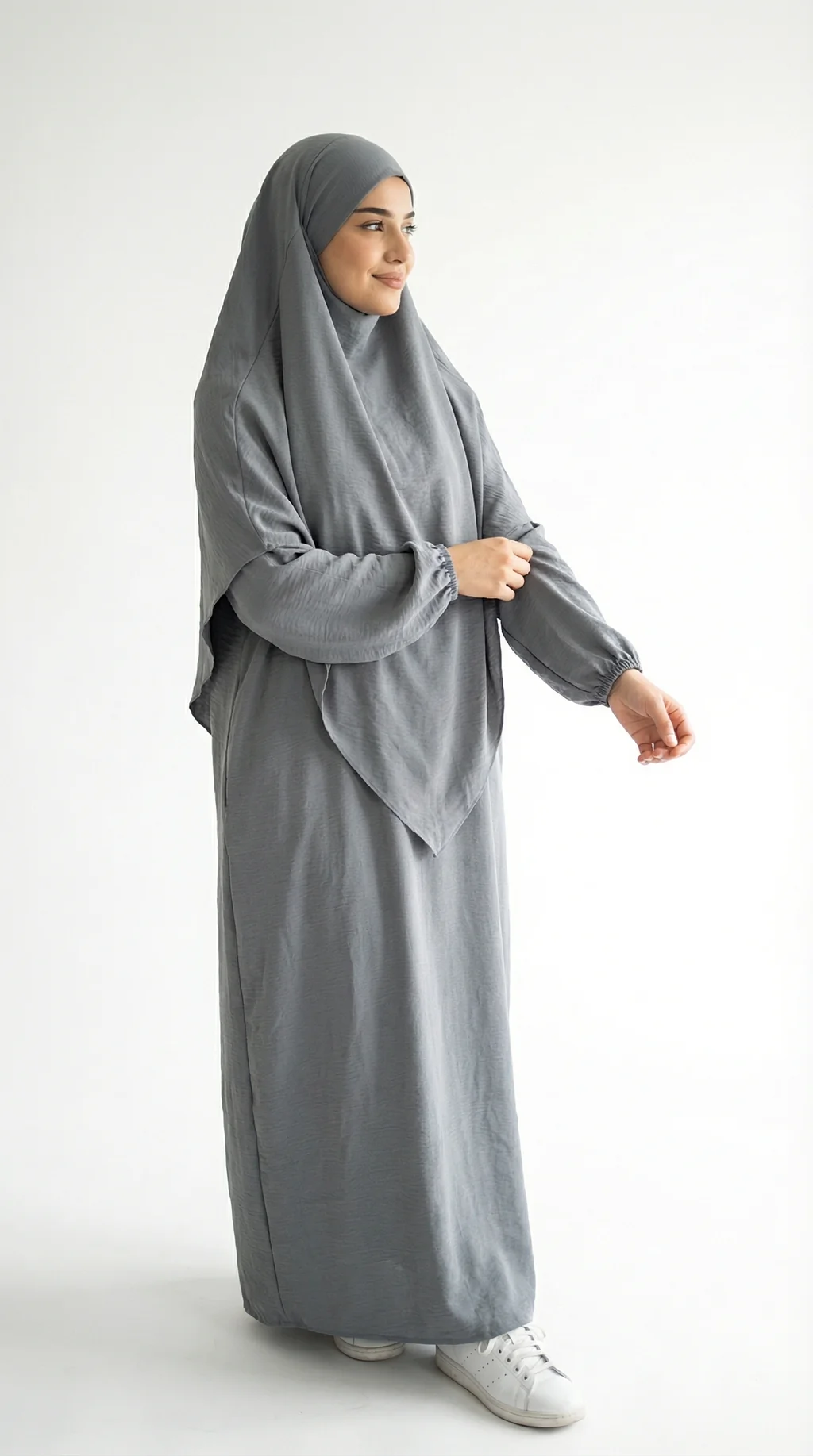 Ce jilbeb gris anthracite est l’alternative parfaite au noir : une teinte profonde, sobre et très facile à assortir. Sa coupe ample assure un tombé naturel et une liberté de mouvement idéale, pour la prière, les sorties ou le quotidien.